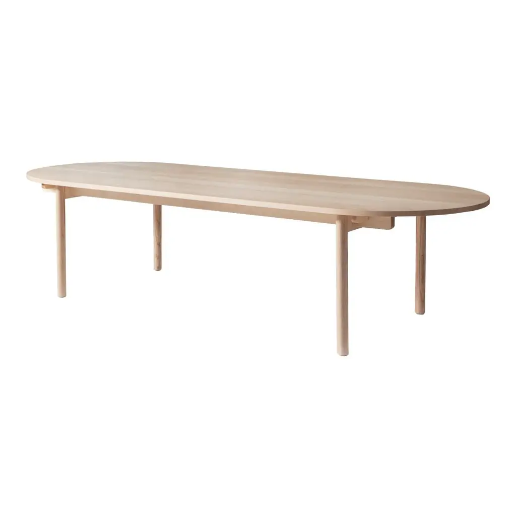 Elegant and modifiable Basic table can be placed both in restaurants, homes and meeting rooms. This light table is delivered in a flat pack, and it is very easy to assemble. Basic table is available in solid ash or oak, either in oval or rectangular shape. One can also combine the shapes by using tables with one oval and one rectangular end: this way it is possible to build a long banquet table, which is then again very easy to separate back into smaller units. By adding rectangular tables in between the oval end versions it is possible to build extremely long entities.