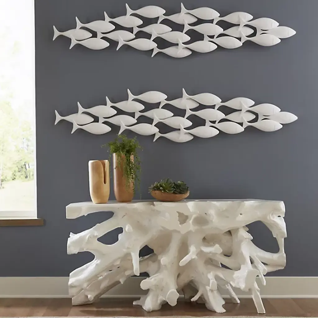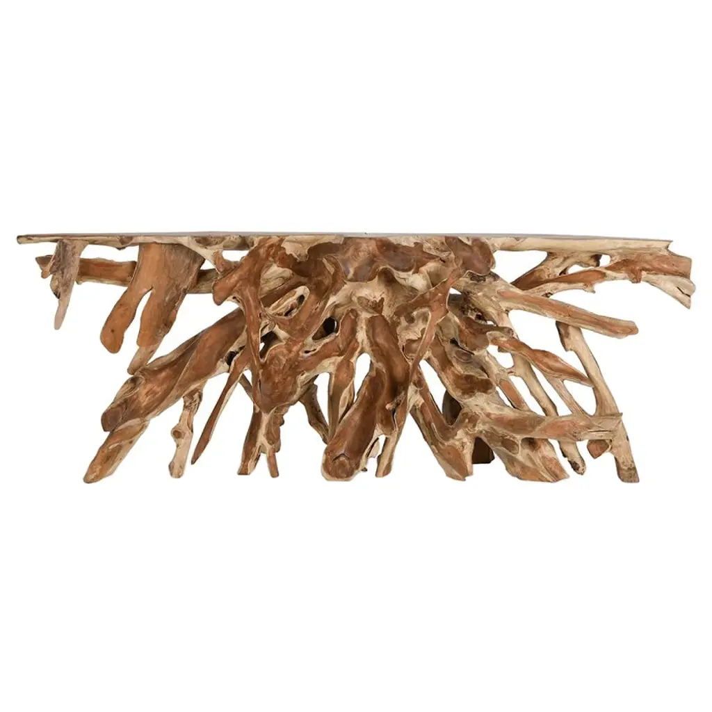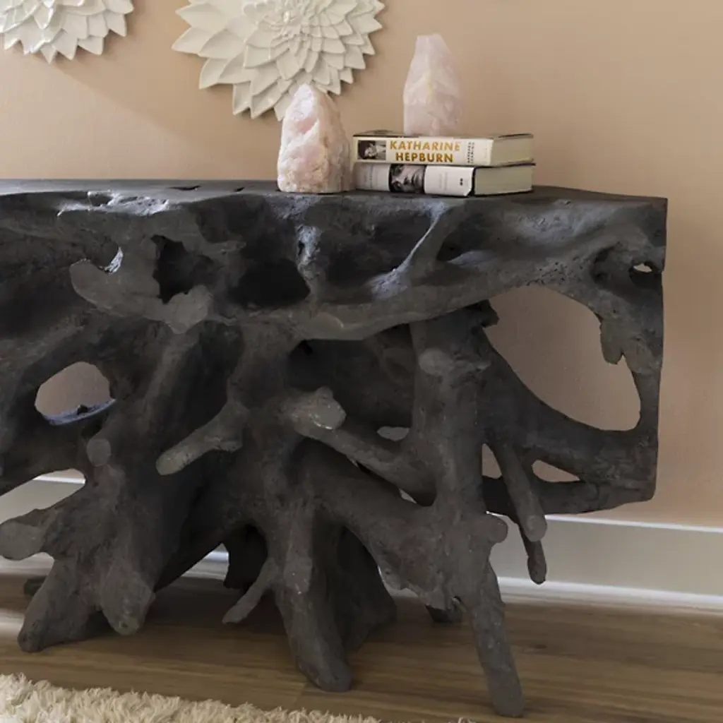 The Beau Cast Root Console Table from Phillips Collection masterfully reimagines the artistry of nature through innovative design. Crafted from composite resin and finished with genuine bronze powder, this striking piece captures the organic beauty of weathered wood roots in an enduring form. The contemporary interpretation maintains all the character of natural driftwood while offering superior durability and a flat plateau top ideal for accessories. Perfect for indoor or outdoor spaces, the bronze finish naturally develops a sophisticated green patina over time if left outside, telling its own story of evolving elegance.