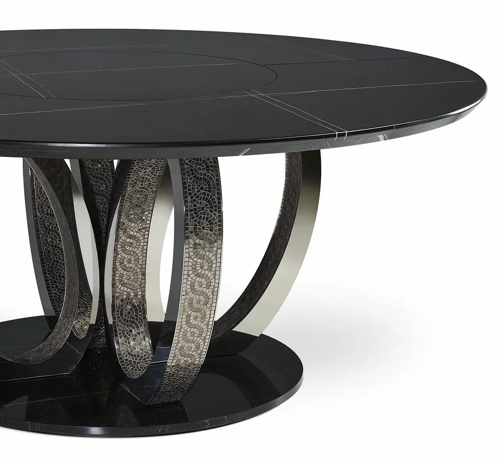 Beautiful Table Base And Top In Marble Rings In Bronze Or Polished With Mosaic