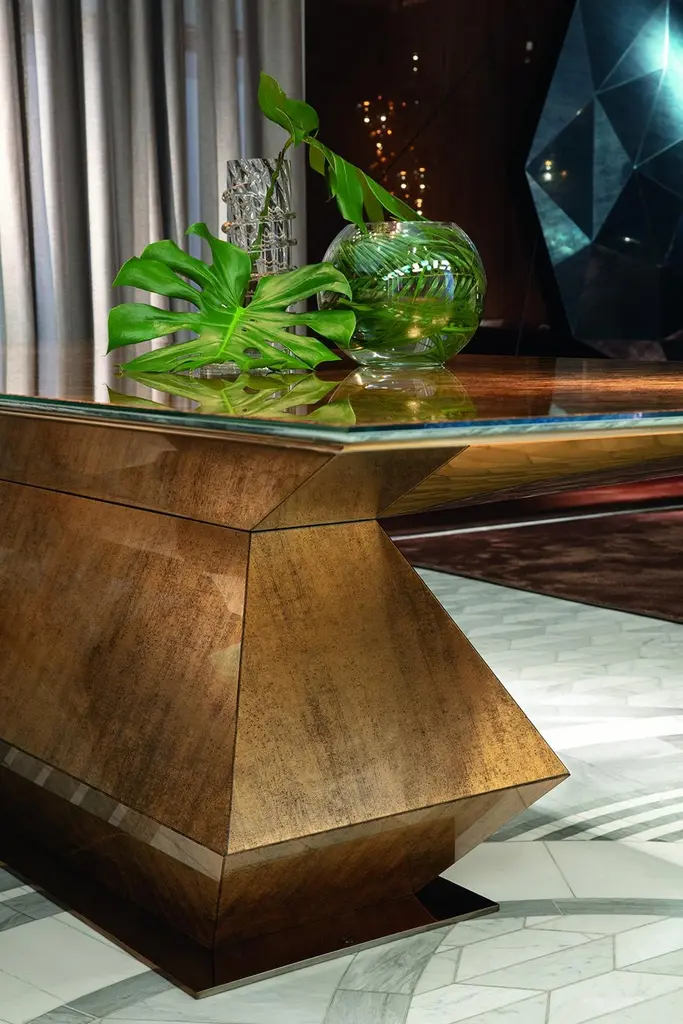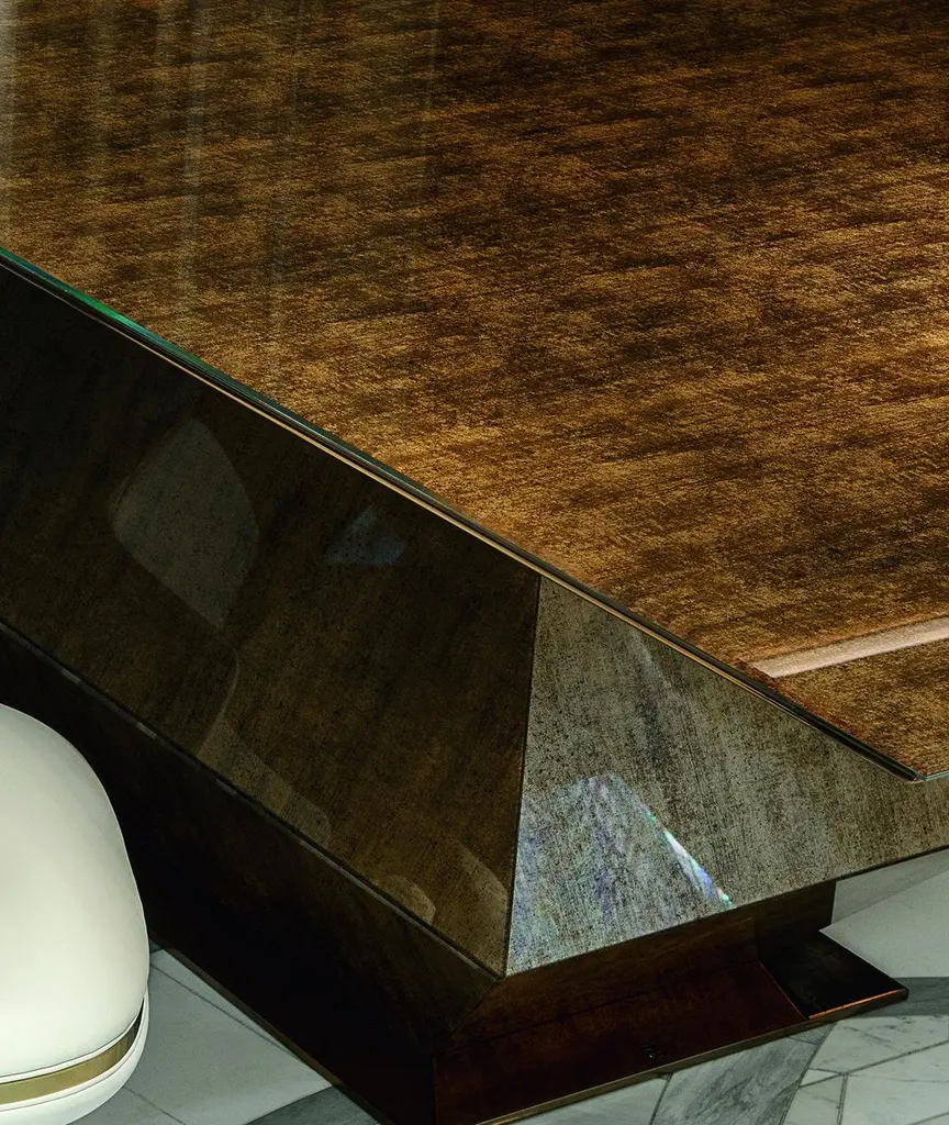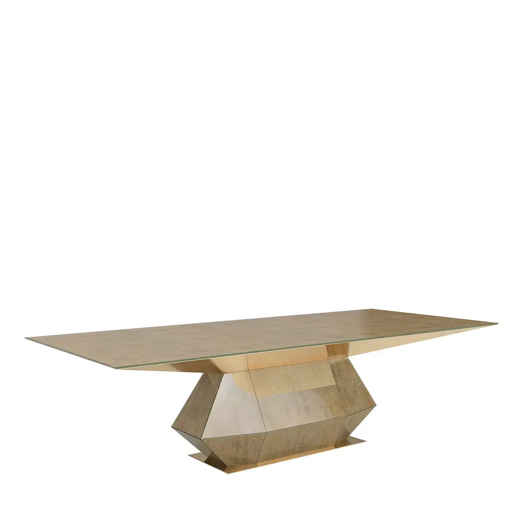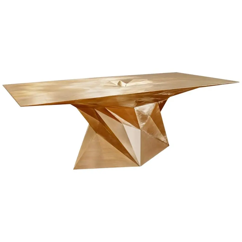Beautiful Table With Metal Frame, Clad In Vetrite Pergamino Gold
