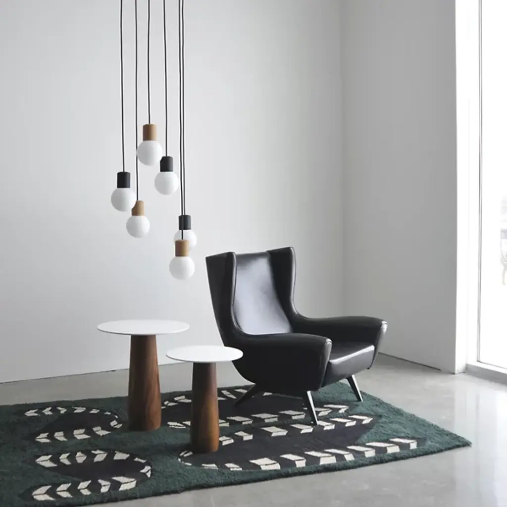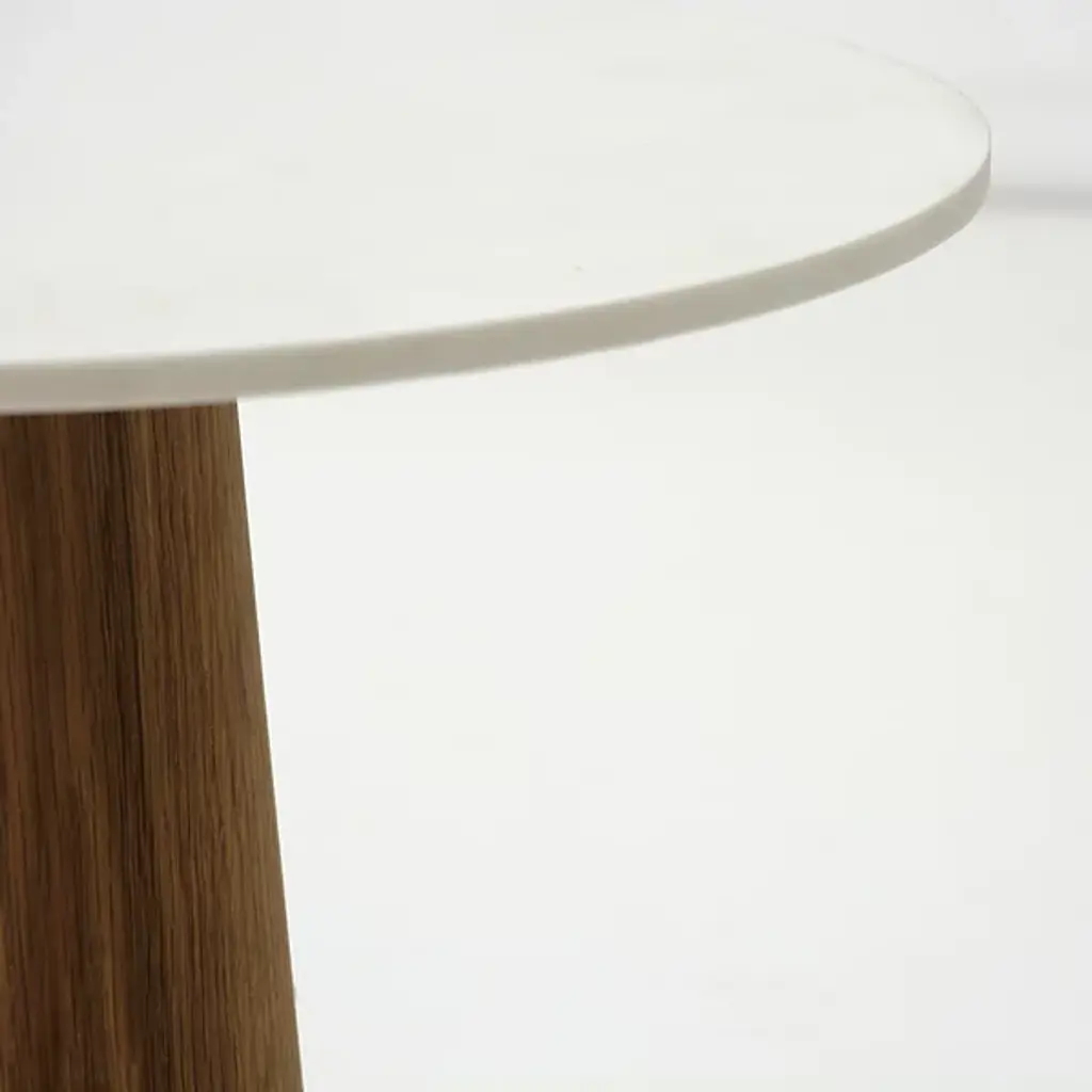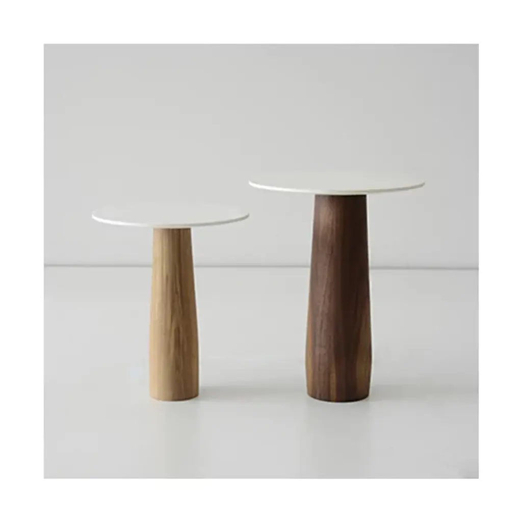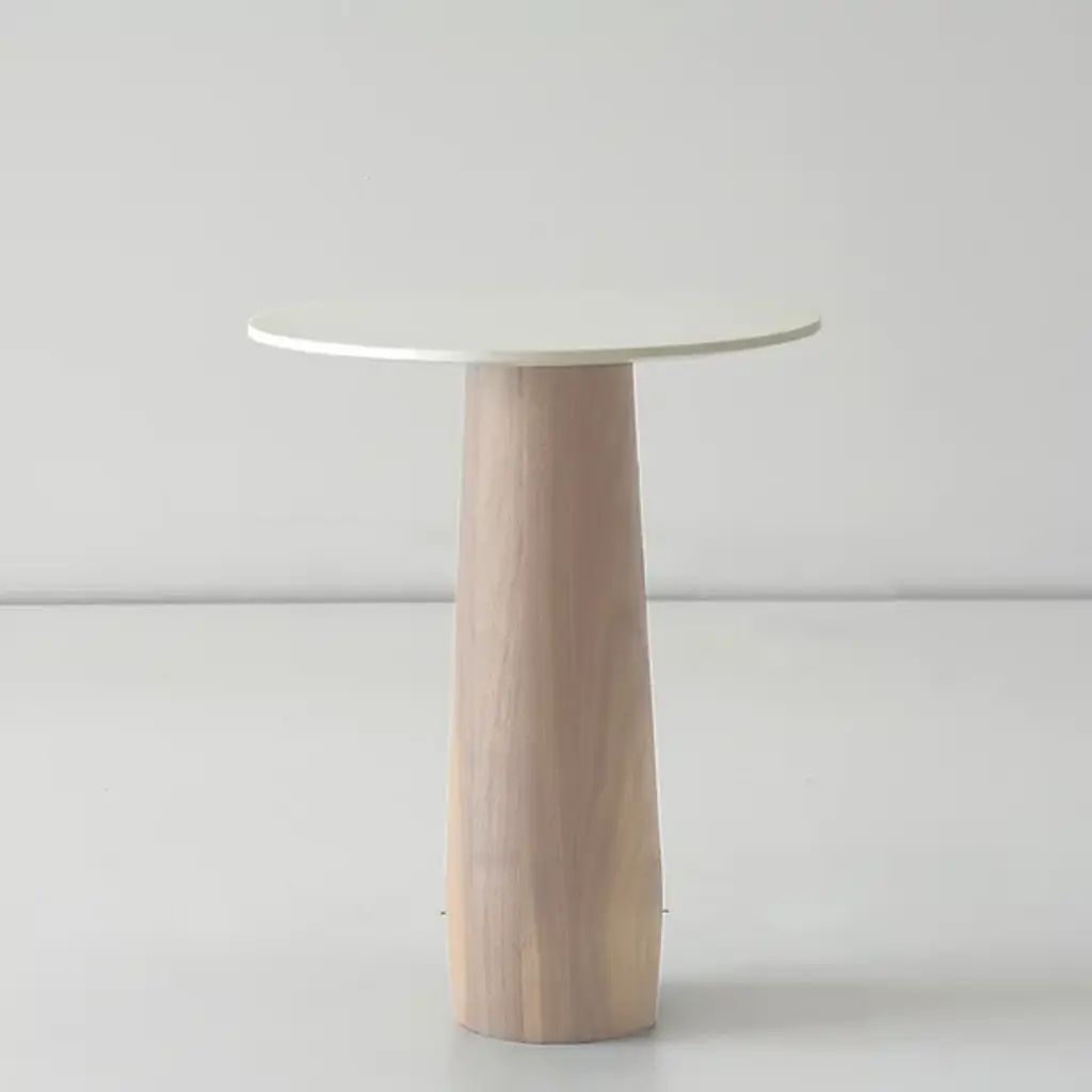 Whimsical in nature, the Bedford Large Side Table is a charming sidekick for the modern living room. The table is handmade in North America and features a round table top supported by a pedestal base. The table top is made from white Corian, a non-porous, stain resistant, and heat-resistant up to 212ºF (100ºC). On the other hand, the table legs are made from solid walnut or solid white oak. The Bedford Large Side Table is available in multiple finishes and also as a Smaller Side Table.