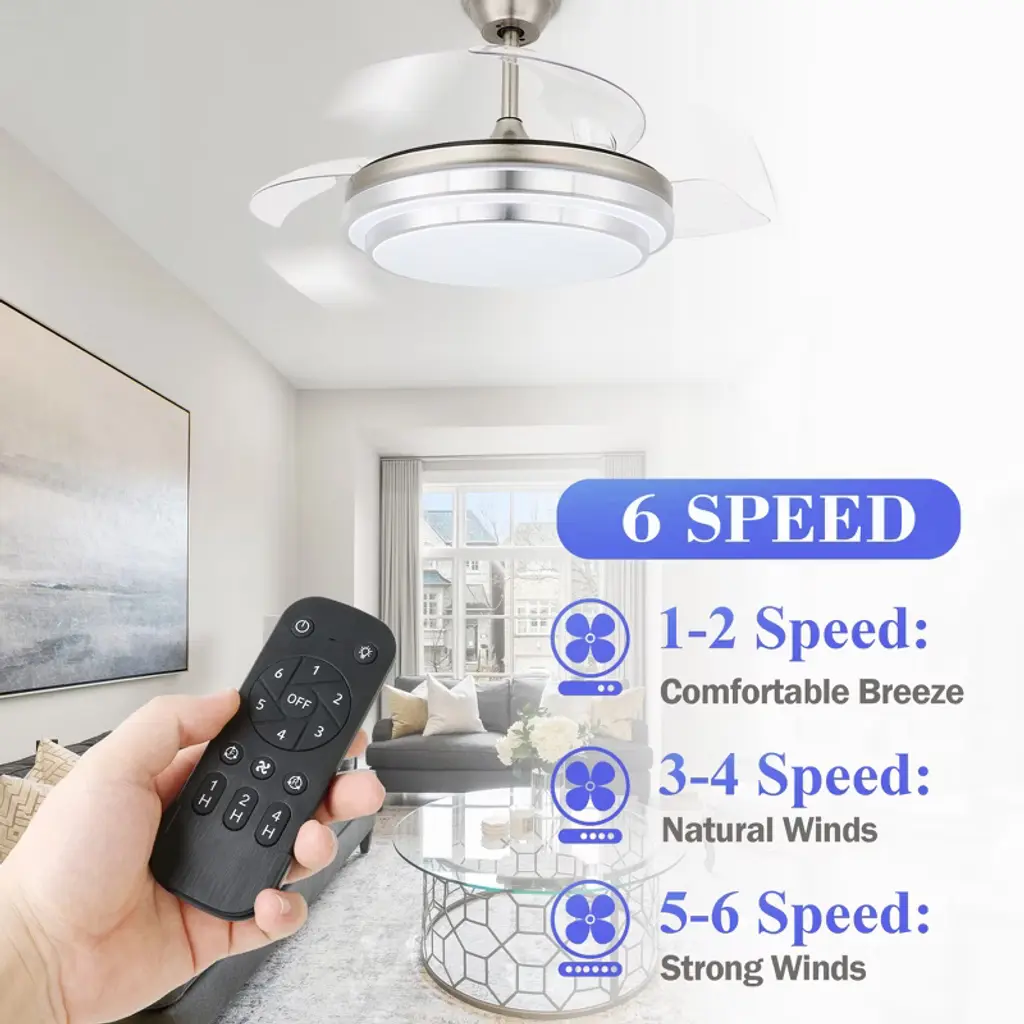 Discover the epitome of luxury and functionality with our groundbreaking ceiling fan, a masterpiece that redefines comfort and elegance in any room. Boasting innovative reversible blades and a sleek retractable design, this fan seamlessly adapts to your changing needs throughout the seasons. Illuminate your space with the radiant 36W LED light, offering customizable color temperatures to create the perfect ambiance for every occasion.Select from six fan speeds to effortlessly customize your airflow and enhance your comfort. Elevate your home with this luxurious and sophisticated addition, meticulously designed to add a personalized and stylish touch to your living space.