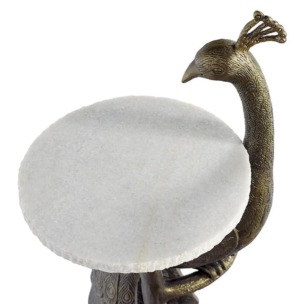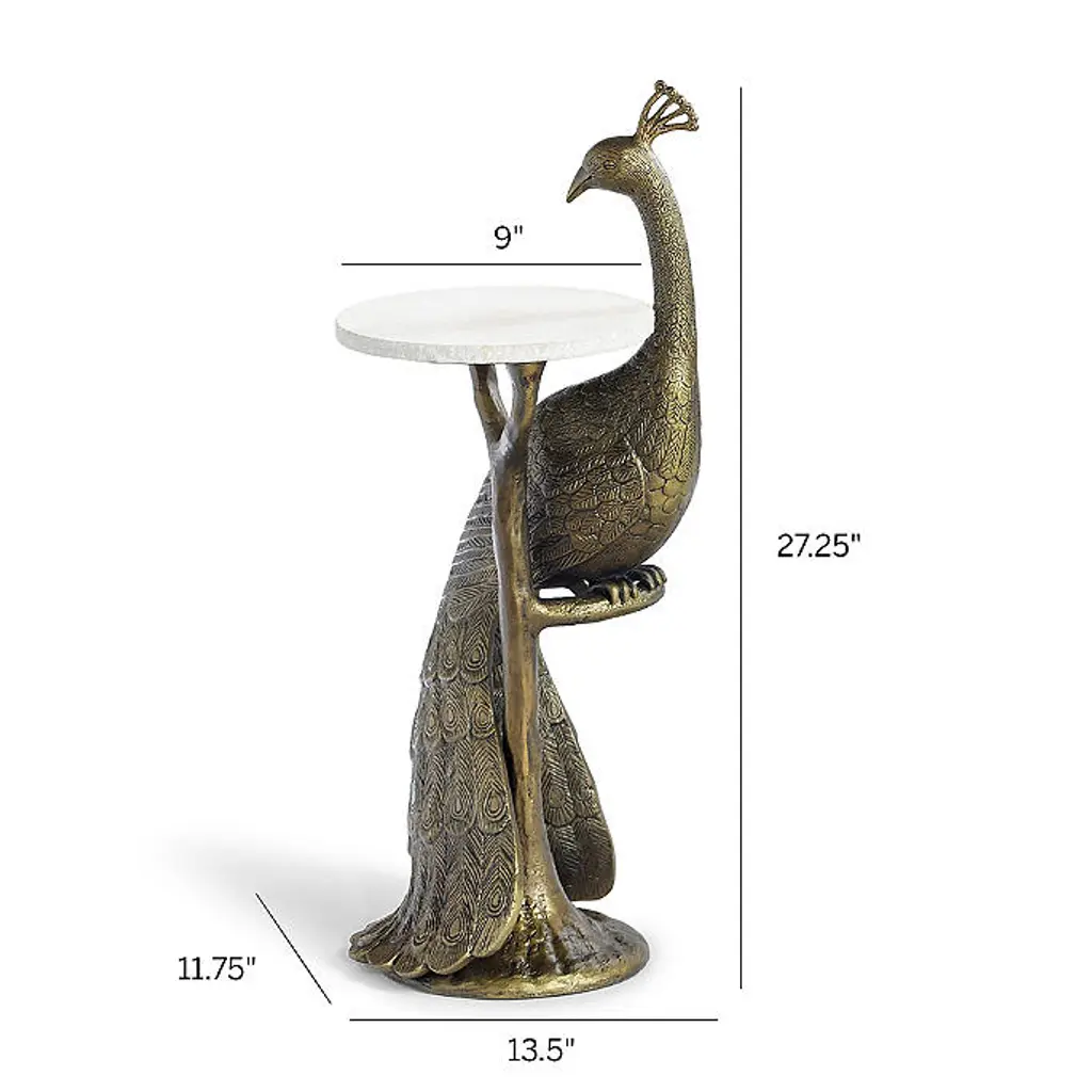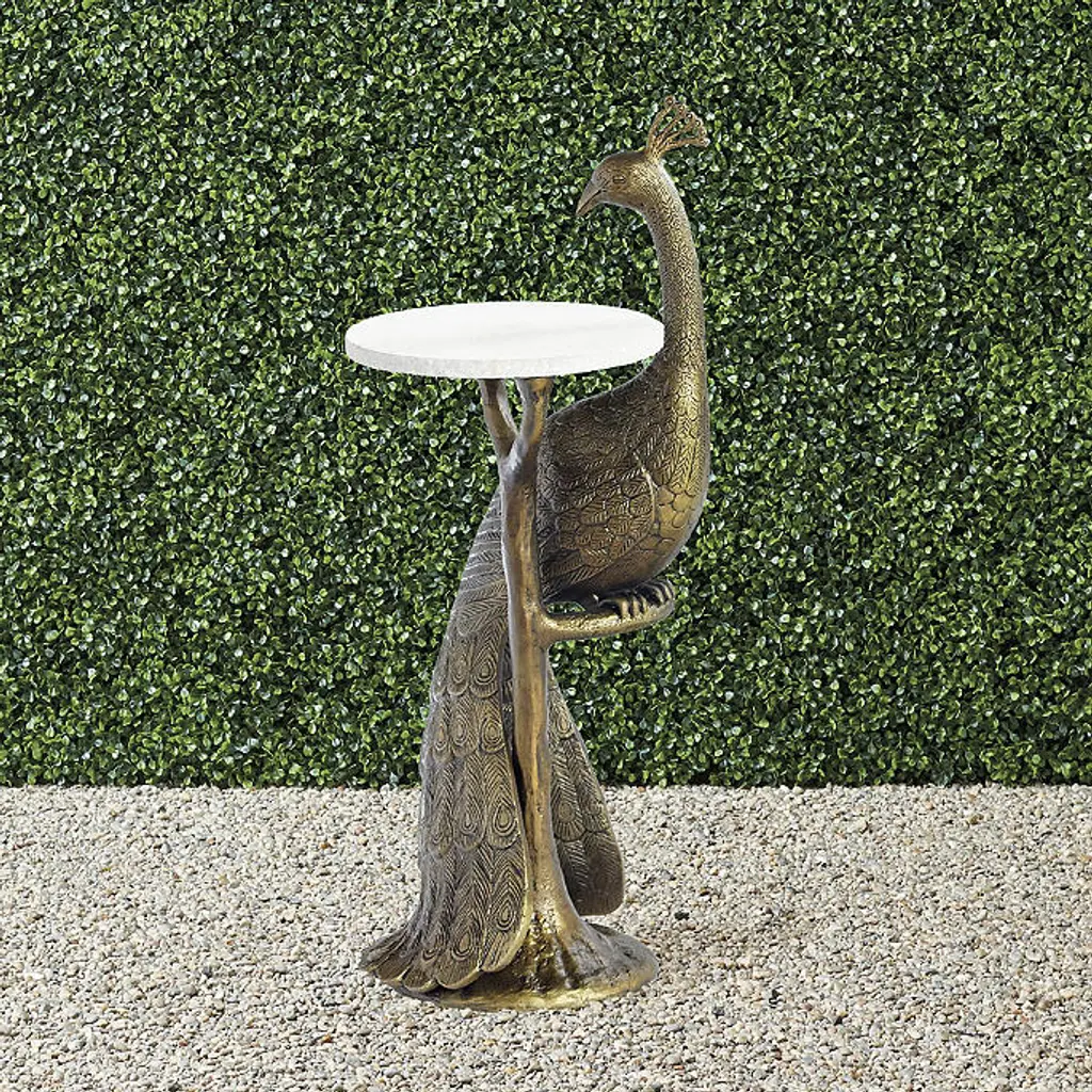 Beautifully detailed on all sides, our Bella Drink Table is a stunning statement piece in any setting - indoors or outside. Sculpted by hand and then crafted from cast aluminum, this functional work of art features a majestic peacock perched on a branch that holds a marble tabletop with hand-chiseled edges. Aluminum table is cast from a mold handcrafted by artisans Marble tabletop features hand-chiseled edges Antique Brass finish For indoor and outdoor use Tabletop has a maximum weight capacity of 10 lbs. Due to natural variations in marble, each piece is inherently uniqueImported A Frontgate exclusive.At Frontgate, our primary focus is quality. We guarantee that every product we sell will stand up to the supreme test – our customers' satisfaction. To learn more about our policies, visit our Shipping & Processing, Returns & Exchanges and Warranty & Price Guarantee pages.