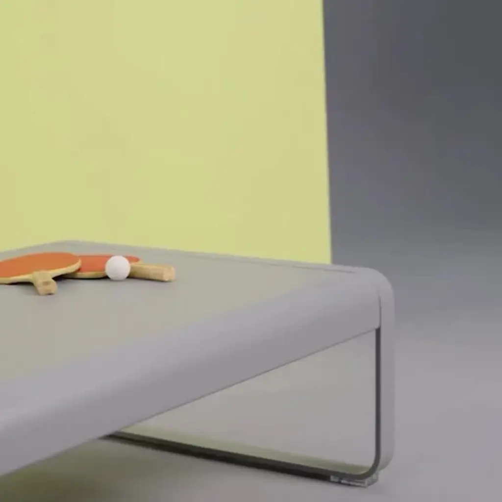 The Bellevie Large Low Table by Fermob puts a modern spin on the tray-like table. It features a sleek appearance and rounded edges, ideal for homes with small children. With a minimal and elegant silhouette, this low table is a staple piece for modern interiors. The tabletop is made from a solid steel sheet, and the base is made from flat aluminum. Each leg comes with foot pads to prevent scraping on the floor.