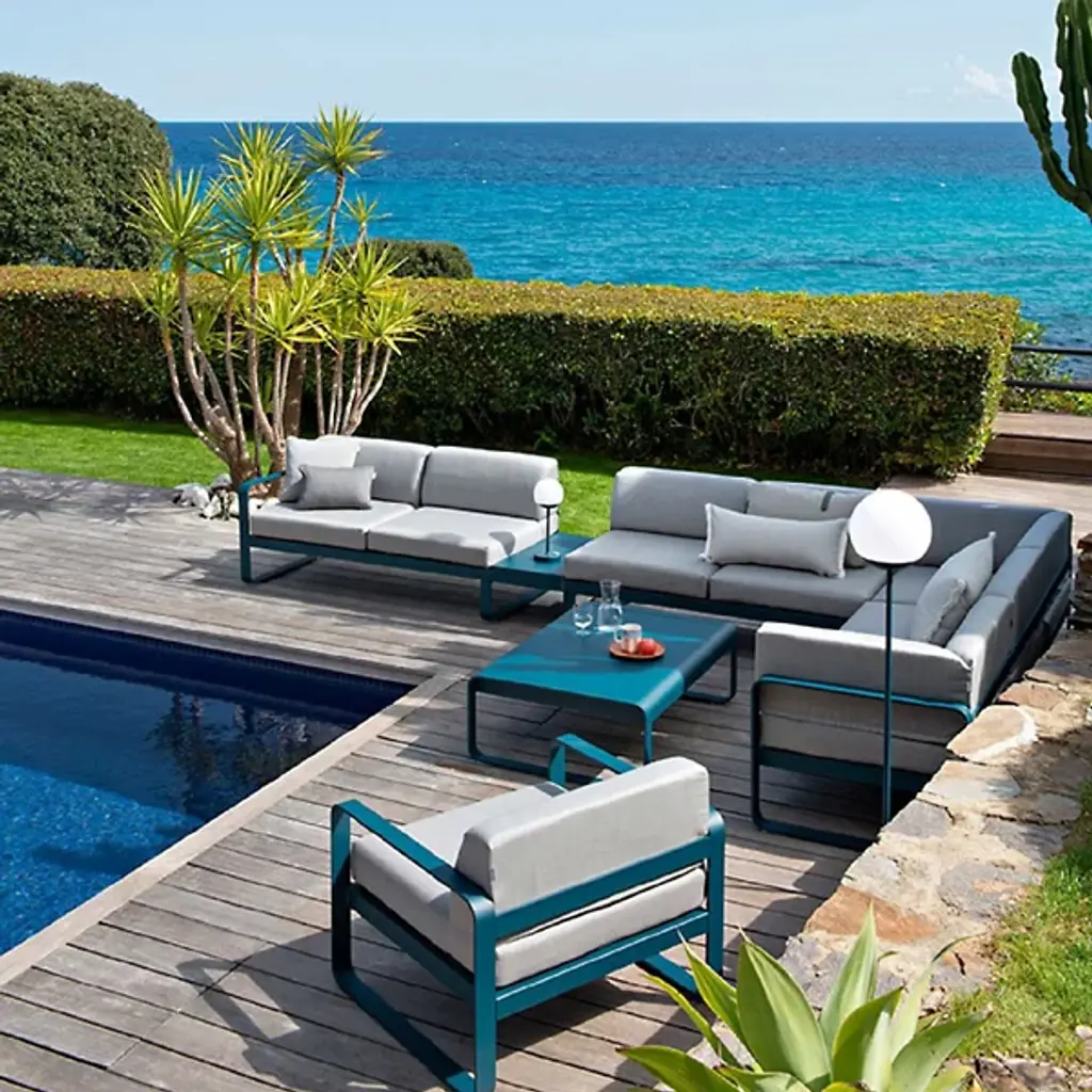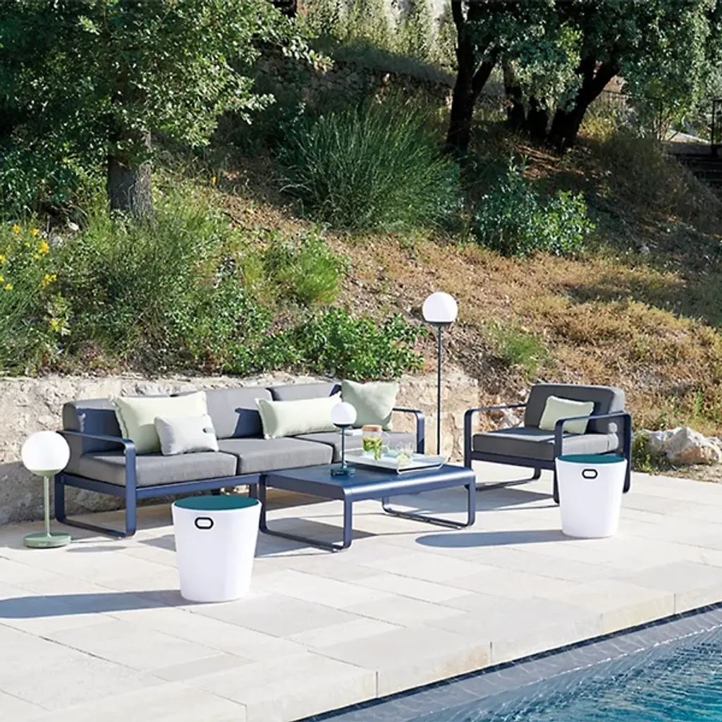 The smooth beauty of Bellevie, ready for lounging. The Fermob Bellevie Low Table is made entirely out of aluminum, a lightweight yet exceptionally durable material that is made even more so with an anti-UV powder coat finish. More than 20 color options are available to give your outdoor (or indoor) lounge space vibrant pop as well as style.