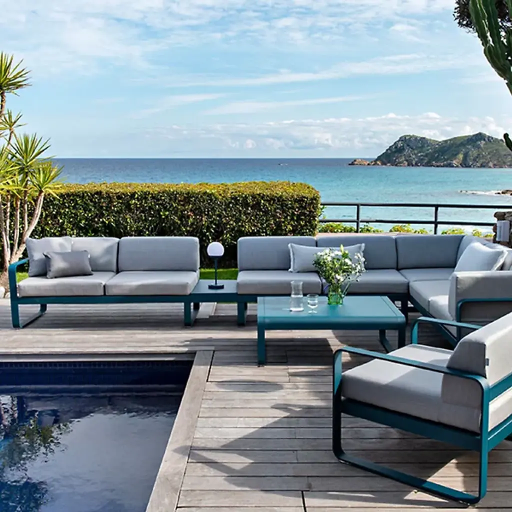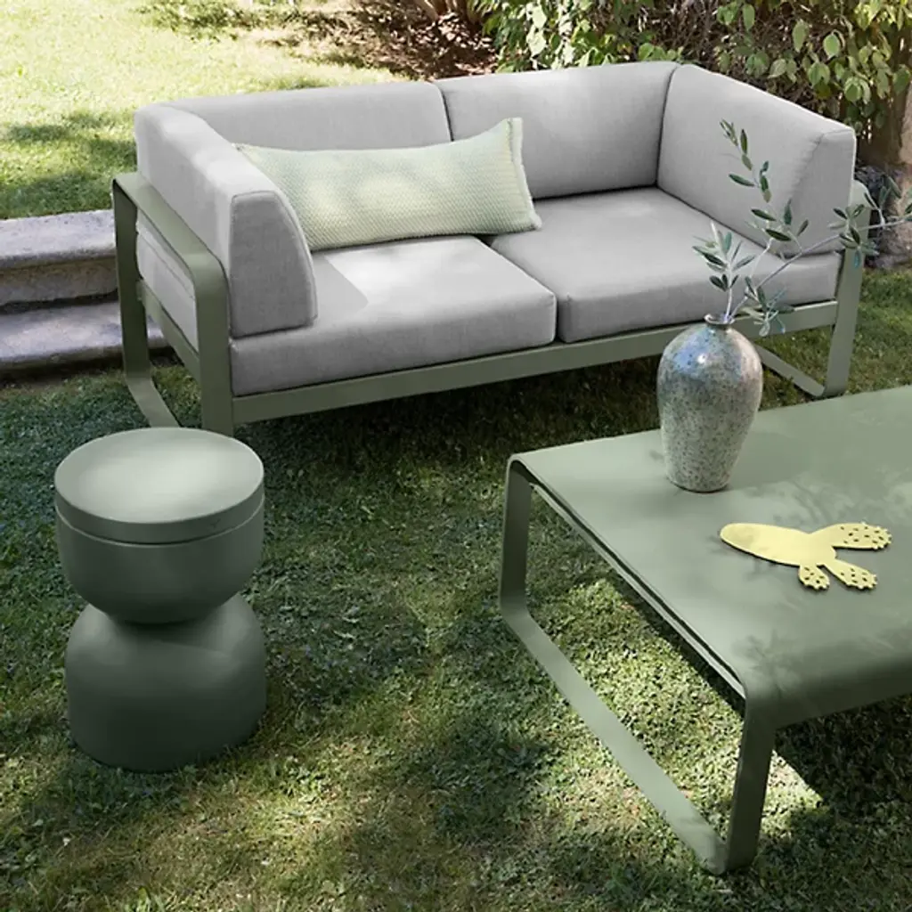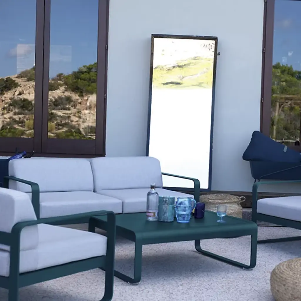 The smooth beauty of Bellevie, ready for lounging. The Fermob Bellevie Low Table is made entirely out of aluminum, a lightweight yet exceptionally durable material that is made even more so with an anti-UV powder coat finish. More than 20 color options are available to give your outdoor (or indoor) lounge space vibrant pop as well as style.