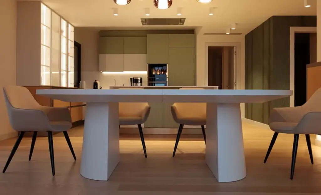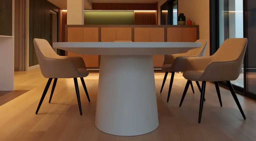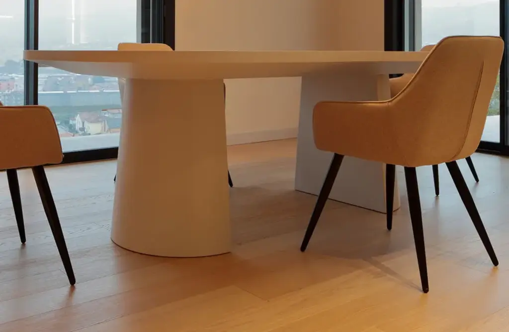 Benedict is a table in matte lacquered wood.