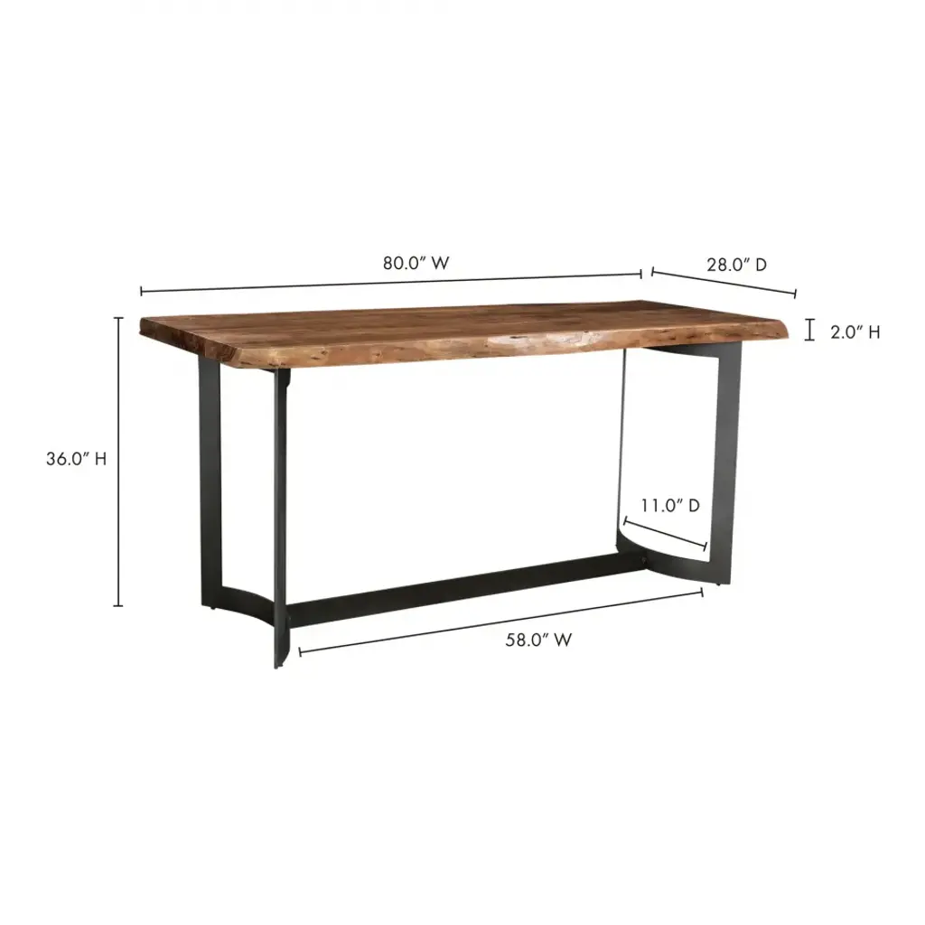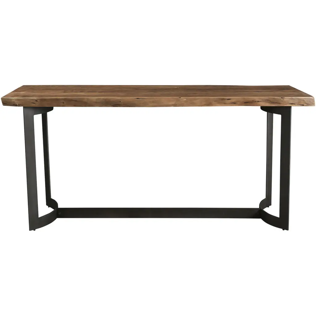 The Bent collection puts nature’s craft front and center. Made of beautiful solid acacia wood, rustic live edge detailing shows off the unique knots and whorls of the wood. This counter table’s acacia tabletop rests on tall, sturdy iron legs, providing artistic flair for your living space. Pair with other pieces in the Bent collection for a complete look.