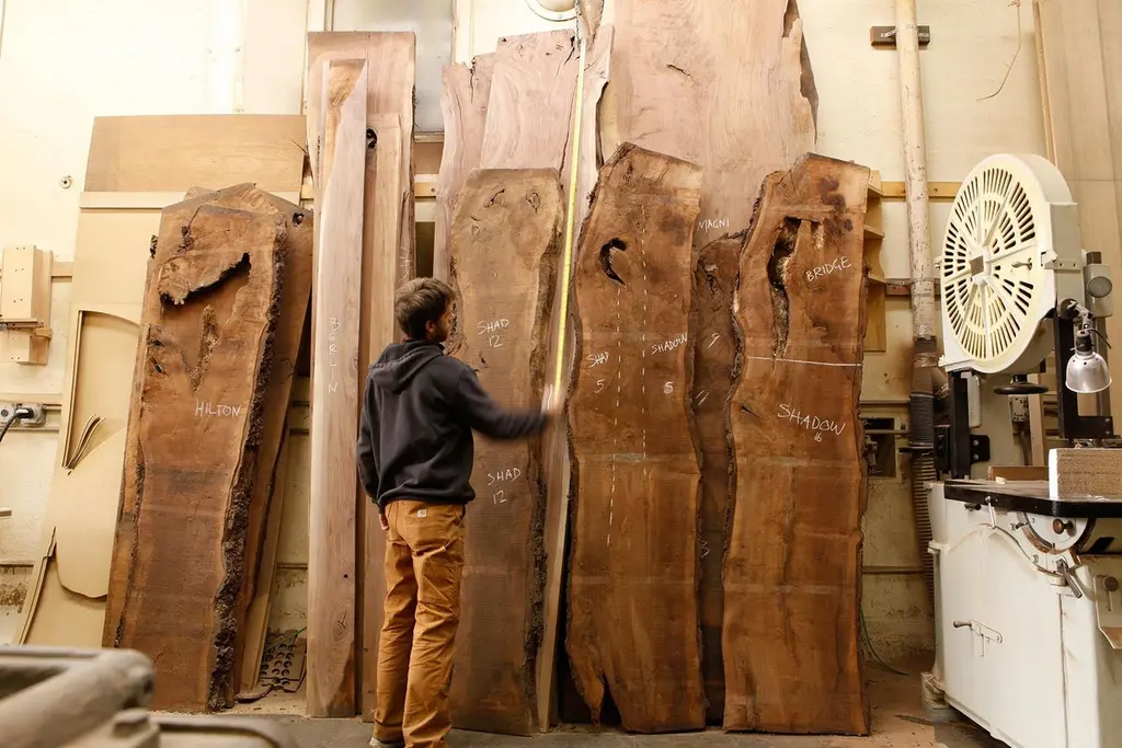 With it’s simple, architectural quality and clean vertical lines, the "Berlin" table is versatile in it’s ability to blend in with any interior style.Those who appreciate wood will discover the quality joinery and superior craftsmanship on display- a table built to last a lifetime [at least!]. The table top is available in multiple configurations to suit many different budgets: live edge, straight edge, multi-plank, bookmatch or single slab. The table is finished and buffed by hand to a buttery smooth oil finish that begs to be touched!We have one of the largest inventories of 100% sustainably harvested Claro Walnut slabs. And here comes the fun part- you tell us the size and we will select our very best slabs for you to hand-pick!