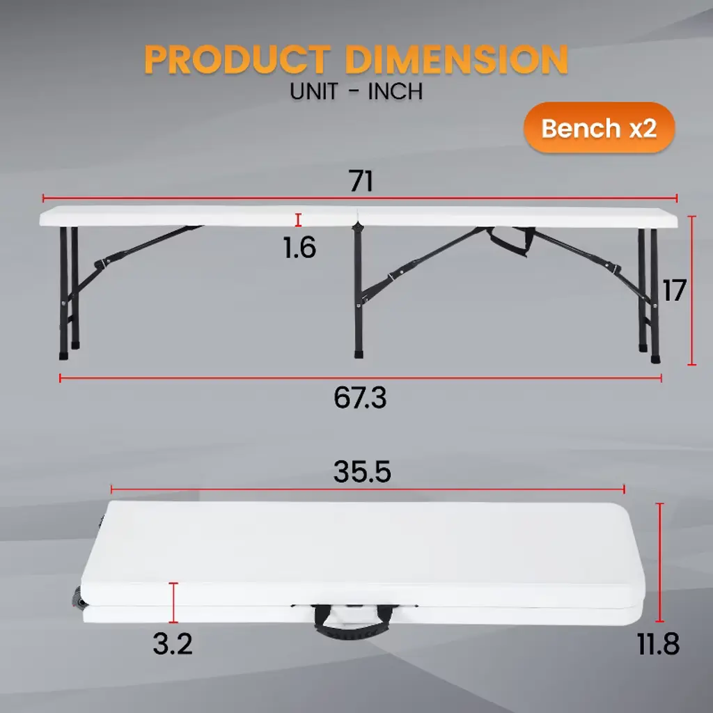 BestMassage Folding Bench is strong, durable, and easy to maintain, made from high-density polyethylene (HDPE) that resists water and mold. It features a safety locking mechanism for added stability and is lightweight for easy transport and storage. Perfect for a variety of uses, whether for trade shows, tailgate games, picnics, camping, dining, or parties, this versatile bench provides reliable seating and convenience wherever you need it.