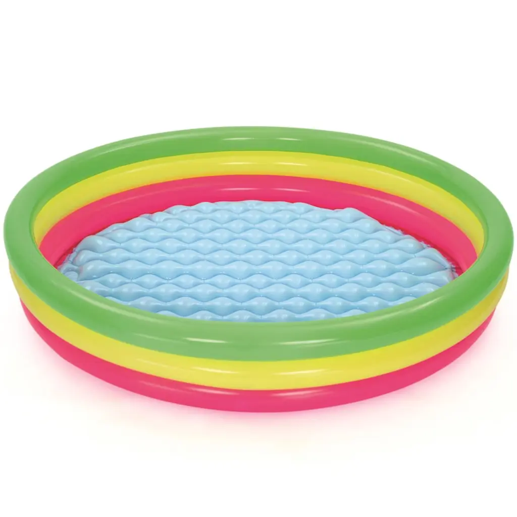 The H2OGO! Big Metallic 3-Ring Pool is the perfect size for families with children, providing a suitable depth for kids to splash around and play in. The practical size also ensures those with small backyard spaces can enjoy water fun in the summer sun. The pool has transparent green sides with a reflective metallic liner for an ultra-cool look in your backyard. It easily inflates so kids can begin their swimming adventure in no time! Bestway kiddie pools makes it possible for kids to take a refreshing dip in the pool right in their own backyard. Following the latest fashions and trends, these inflatable pools are fun and offer kids hours of endless summer fun. Easy to inflate, deflate and store, kiddie pools are a conveniently simple option for families and a great way to introduce young ones to water.