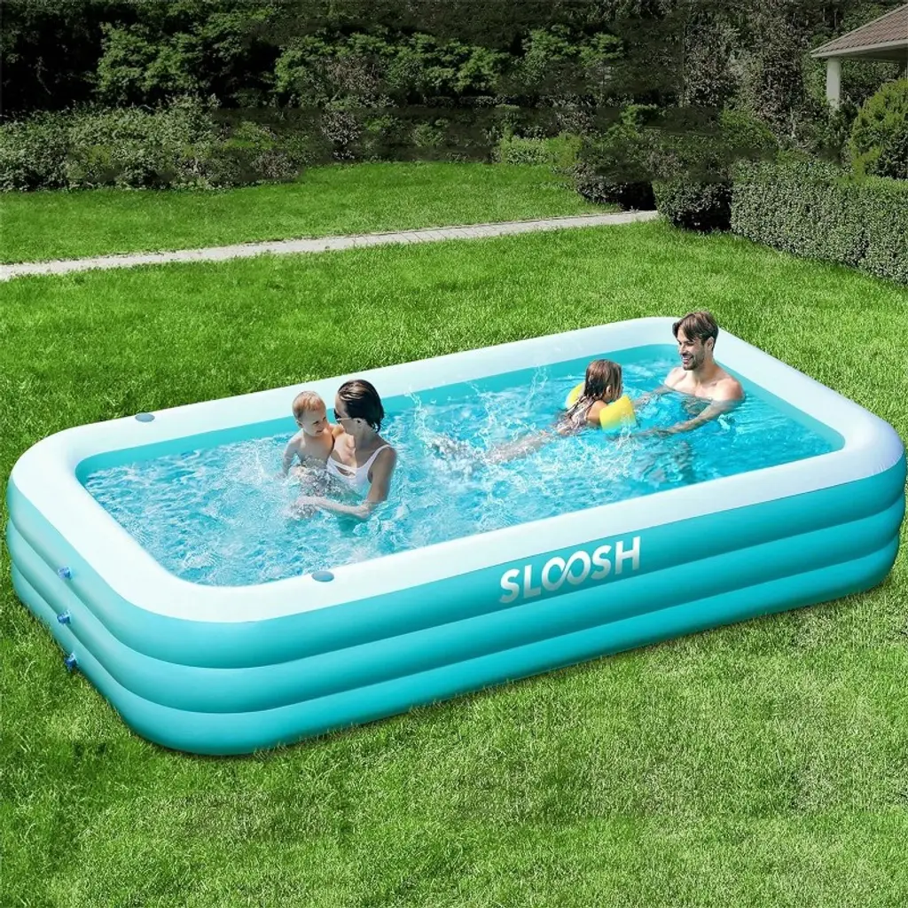 Designed to get kids and adults moving, grooving and out of the house, the H2OGO! Family Fun Pool puts the focus back on fun! With 2 cup holders to hold the cold beverage of your choice, 2 inflatable cushions and a headrest for maximum comfort, the Family Fun Pool provides a great place to rest and relax. With extra wide side walls, this pool is perfect for younger families to splash and play in the sun. And taking the Family Fun Pool down is a breeze with the easy to use drain valve. Splashing in the sun has never been more fun! Recommended for ages 6 and up. WARNING: CHOKING HAZARD -- Small parts. Not for children under 3 yrs.