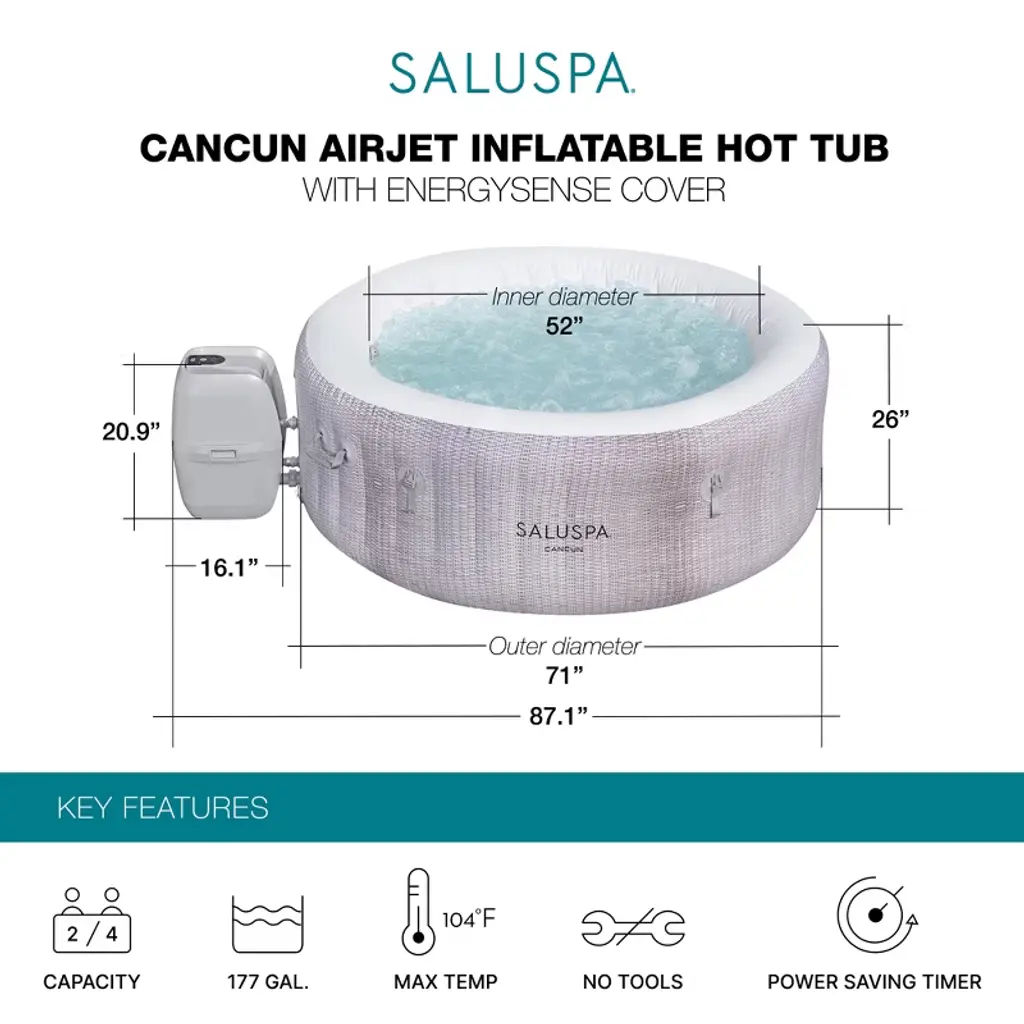 Bestway Saluspa Cancun 2-4 Person Inflatable Hot Tub, Round Energy-efficient Portable Spa With 120 Airjets, 71" X 26"