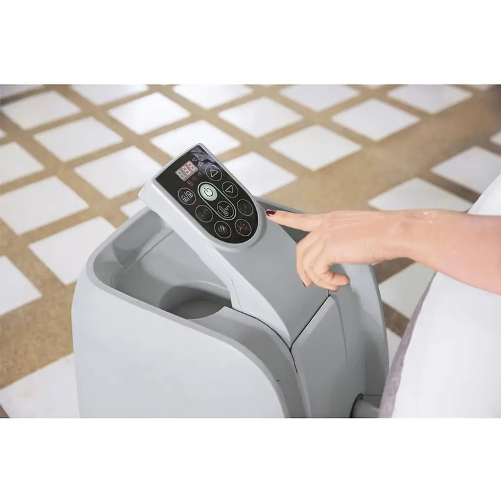 After a long day, nothing is more relaxing than sinking into warm, bubbling water in your backyard. The spacious, round design of the Bestway SaluSpa Cancun Hot Tub provides a soothing massage experience for up to 4 people. Simply attach the pump and watch as it inflates. Featuring an AirJet system with 120 jets, this hot tub releases bubbles from the bottom of the spa to create a warm, bubbling hot tub environment. These calming bubbles will help you relax and unwind from the comfort of your home. Whether you're seeking a solitary escape or hosting a gathering of friends, this spa caters to your every need. Built with durable DuraPlus materials to avoid damage, you can ensure this hot tub retains its shape after repeated inflation and deflation. Including a FreezeShield with an automatic heating function, this hot tub's inner components will not freeze during colder temperatures. The true game-changer is the EnergySense Insulation, constructed with a multi-layered material. This is designed to prevent heat loss which not only ensures the water remains at the ideal temperature but also conserves energy, making it a great choice. With a simple touch, you can transform your space into a private oasis where worries dissipate. Including built-in cupholders and a reinforced, insulated design that locks in heat while not in use, you can be sure this spa is ready for when you are. Escape away to loosen your muscles with the Bestway SaluSpa Cancun Hot Tub Spa. ELECTRICAL SAFETY: Do NOT use an extension cord or multi-plug adaptor; plug the hot tub directly into a grounded socket corresponding to the electrical rating of the attachment plug (110-120V AC, 60Hz, Single Phase 12A at 68ºF). Outdoor installation is preferred; indoor installation has special requirements