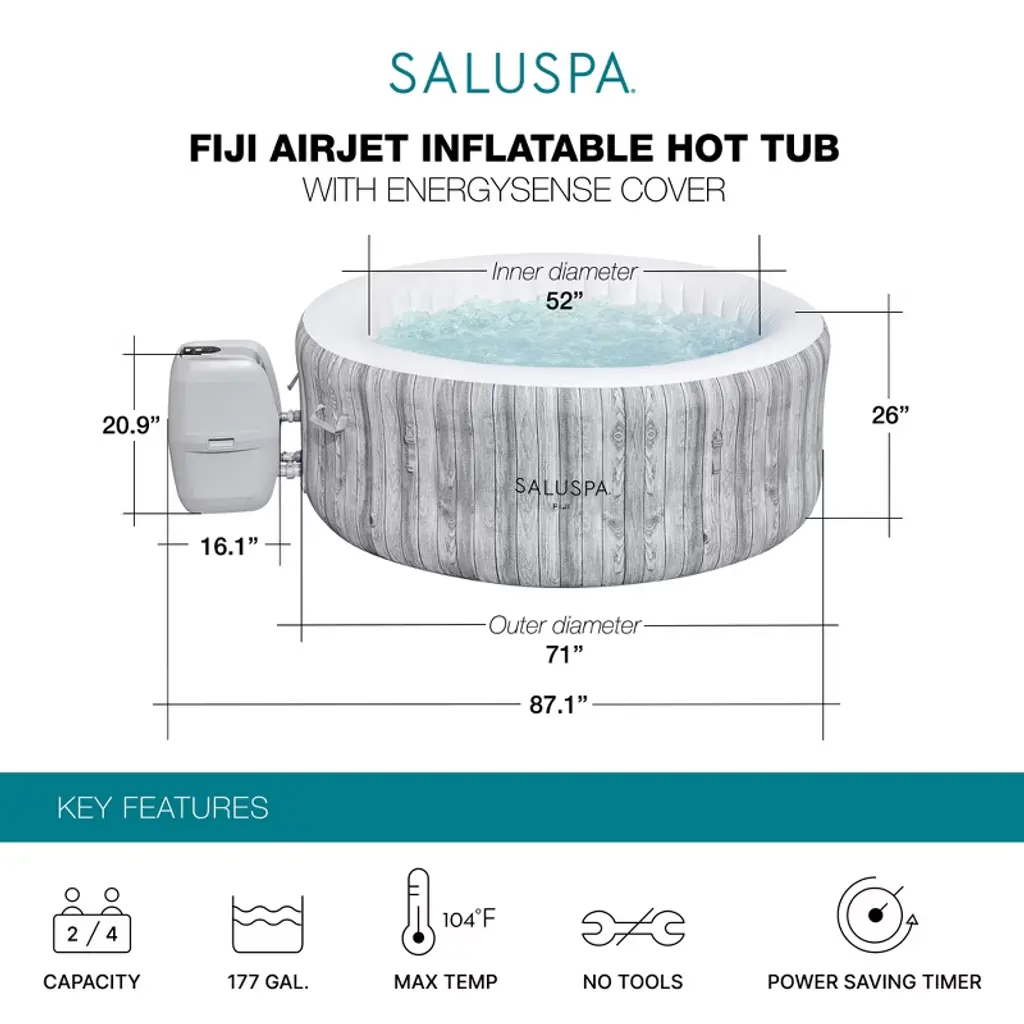 Bestway Saluspa Fiji Airjet Large Round 2 To 4 Person Inflatable Hot Tub Portable Outdoor Spa With 120 Airjets And Energysense Cover, Grey