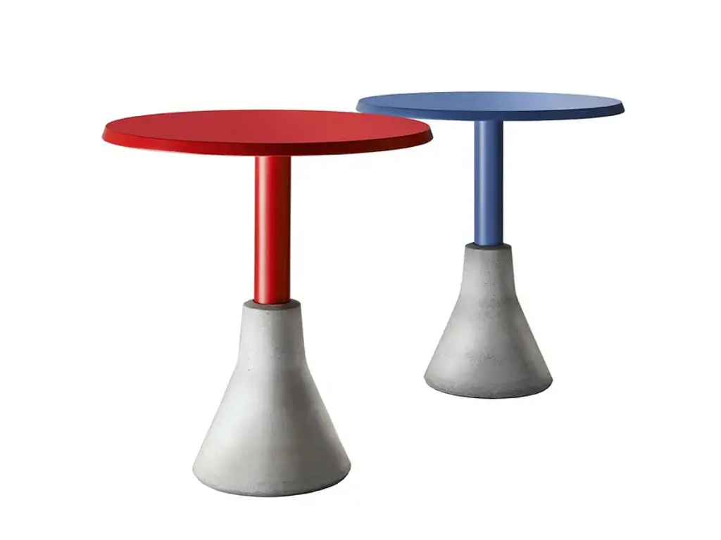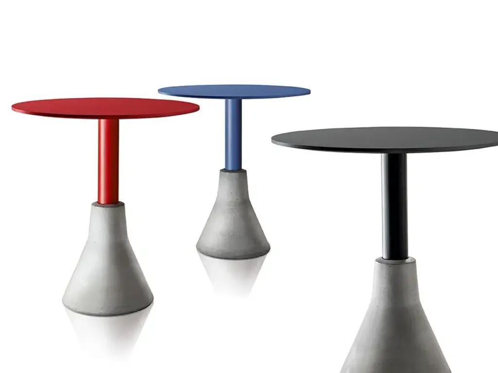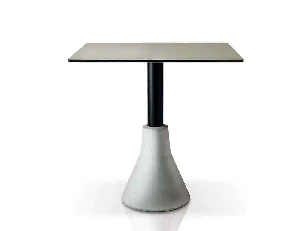 Versatile, simple and sturdy: these are the attributes of BIG FOOT. A range of tables characterized by a perfect balance between shape and material. Suitable for contract use as well as for home, declined in many sizes and finishing.Table with base made of concrete agglomerate natural or painted and metal stand. The top, square or round, can be made in lacquered MDF with slanted edge, in laminate or veenered with plywood slanted edge, in solid HPL laminate or veenered beechwood with straight edge.Versatile, simple and sturdy : these are the attributes of BIG FOOT. A range of tables characterized by a perfect balance between shape and material. Suitable for contract use as well as for home, declined in many heights, sizes and finishing