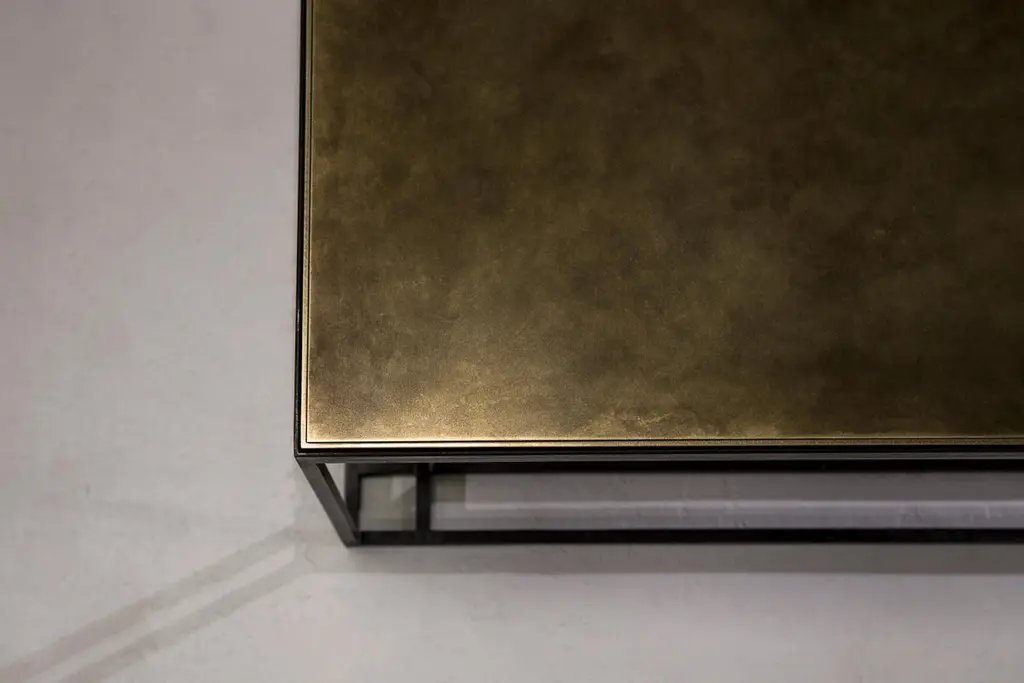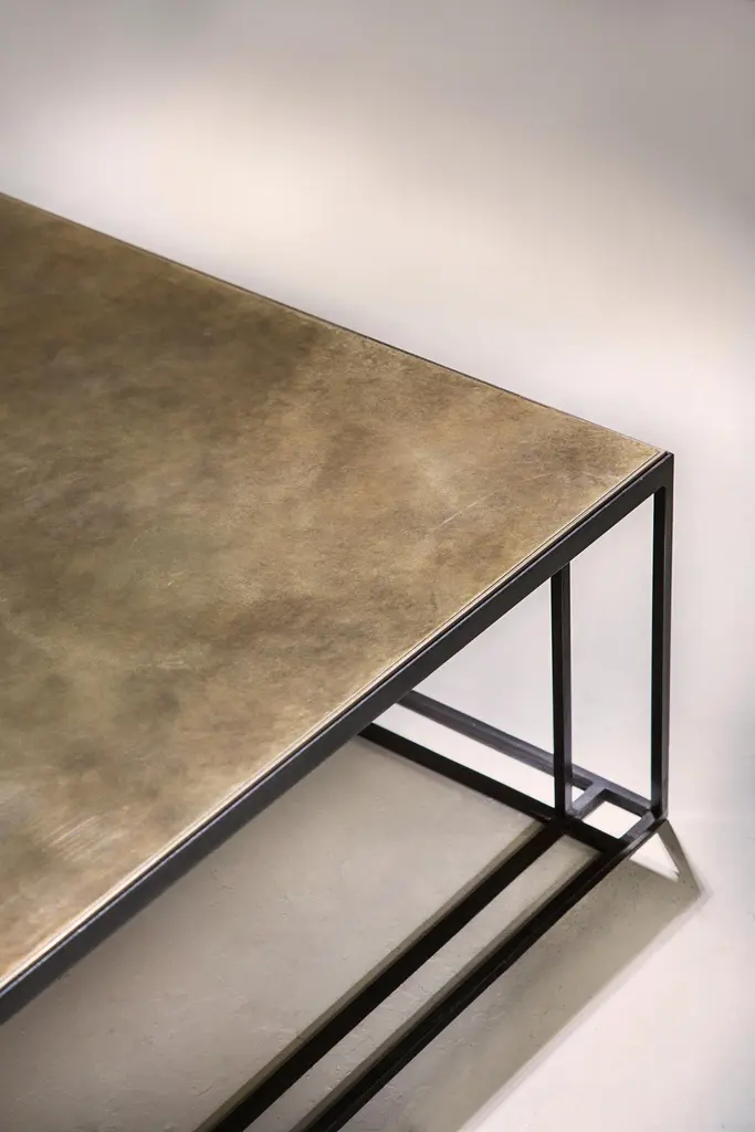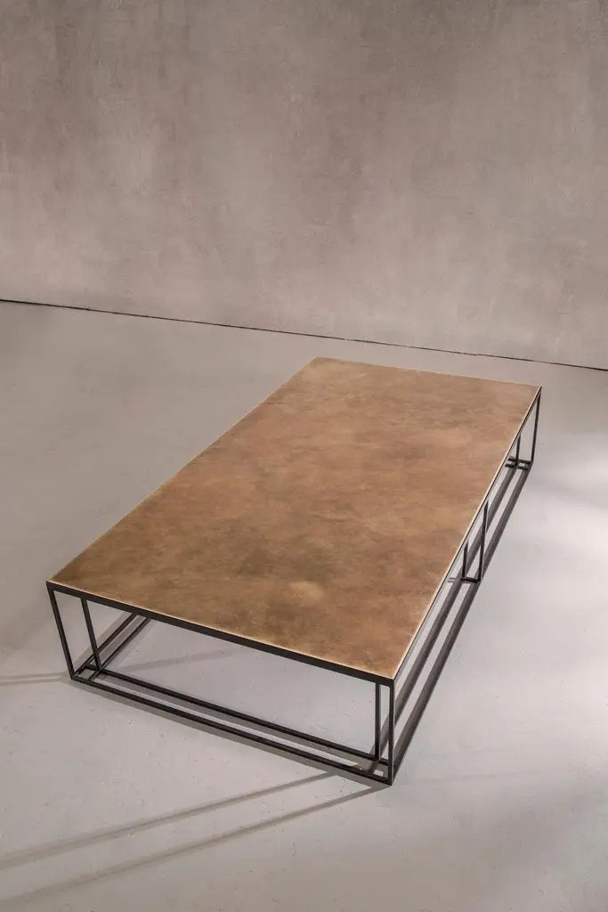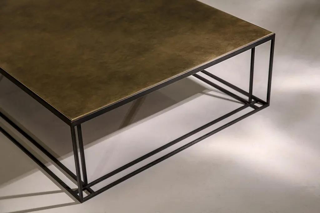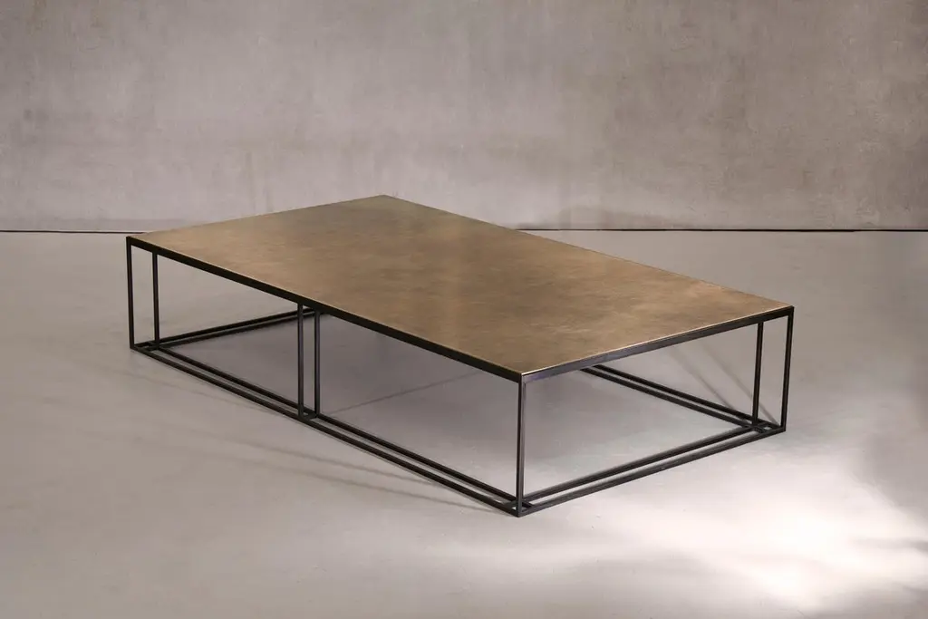 Binate Coffee Table — Extra Large — Blackened Steel Frame — Patinated Brass Top