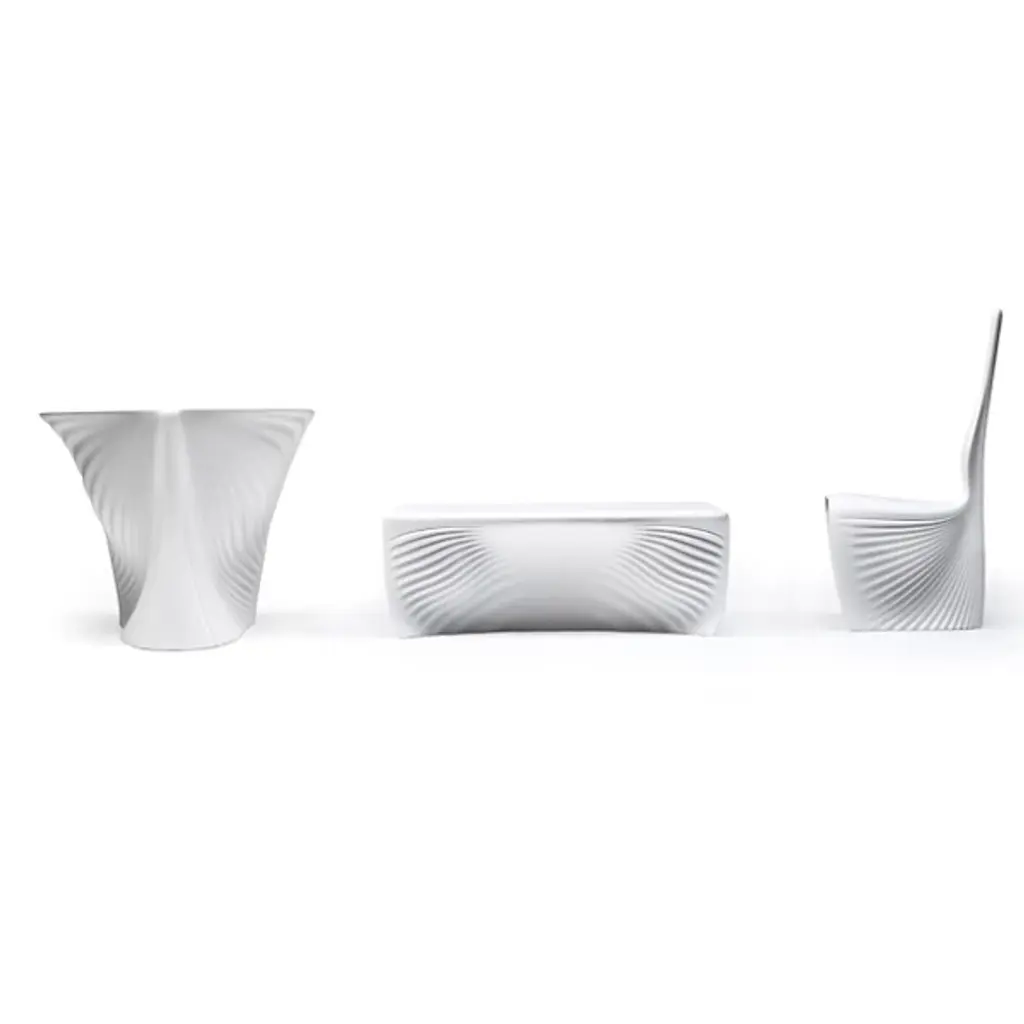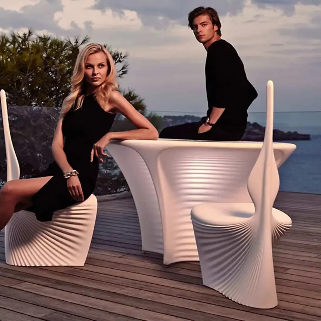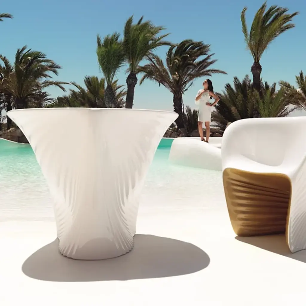 Fashioned after the texture-brimming design of Spain’s La Sagrada Familia. The Biophilia Table from Vondom makes a splash inside or outside your home as a sculptural, functional character. It sets itself apart from any living space with the use of an advanced rotation molding process. This process helps the table achieve its sculptural aesthetics and rugged feel. Your eyes follow from top to bottom the table’s charming and stylish linear cuts. Long, tapered curves outline the cuts for a seductive visual. Pull up a chair and nestle inside the table’s recessed figure. Lay out your refreshments over the circular tabletop for a sophisticated living experience.