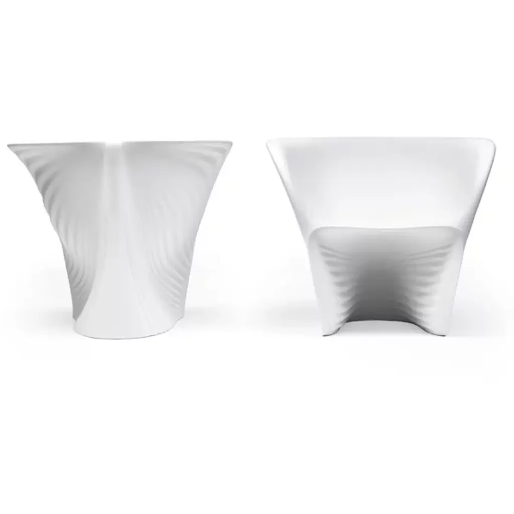Fashioned after the texture-brimming design of Spain’s La Sagrada Familia. The Biophilia Table from Vondom makes a splash inside or outside your home as a sculptural, functional character. It sets itself apart from any living space with the use of an advanced rotation molding process. This process helps the table achieve its sculptural aesthetics and rugged feel. Your eyes follow from top to bottom the table’s charming and stylish linear cuts. Long, tapered curves outline the cuts for a seductive visual. Pull up a chair and nestle inside the table’s recessed figure. Lay out your refreshments over the circular tabletop for a sophisticated living experience.