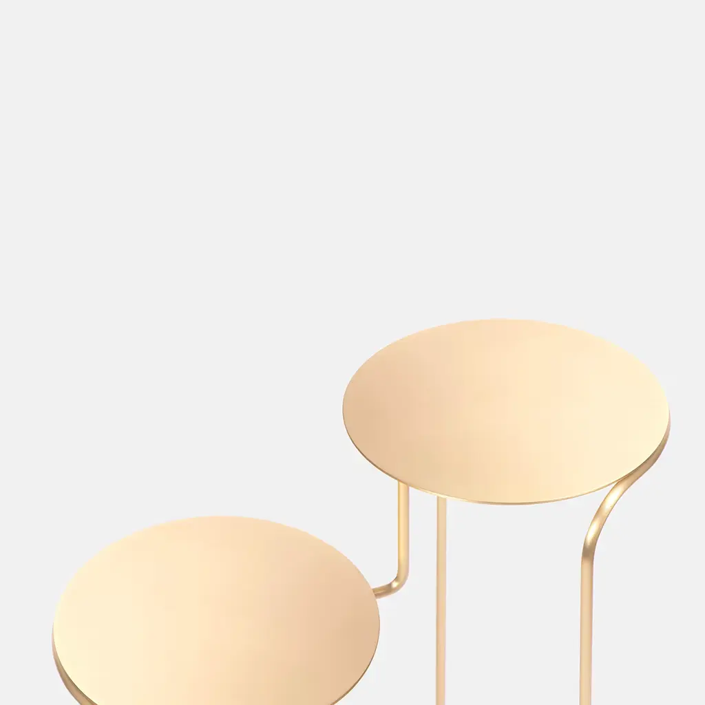 A single continuous wire drawing geometries, where the rigor of the lines plays with circular shapes that embrace the two planes at different heights intersecting in a design that creates an unexpected composition. Bistable by Enrico Girotti is made in steel galvanized in brass hand brushed. Please, ask the Concierge for customization options.