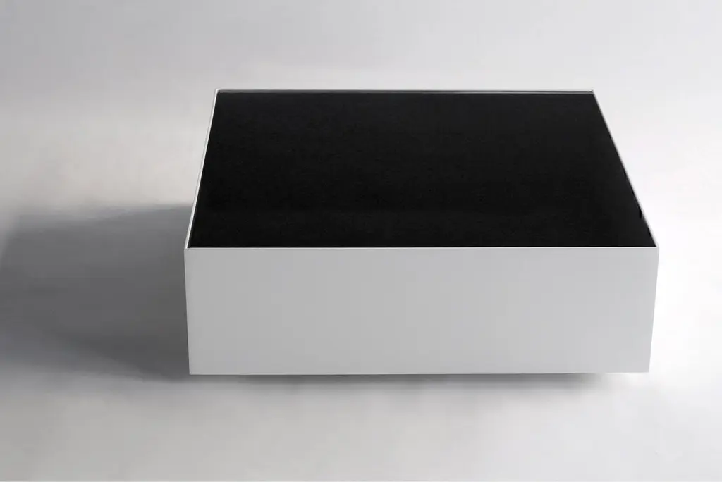 Black Ice Coffee Table by Phase DesignDimensions: D 76,2 x W 76,2 x H 25,4 cm.Materials: Spandrel glass and white powder-coated metal.Steel coffee table with spandrel glass top. Available in polished chrome or powder coat finish. Prices may vary. Please contact us.The black ice ballot box invokes the spirit of minimalist artist Donald Judd. Crisp lines unify to create a steel box with a sleek sunken spandrel glass top. The table is constructed out of steel and finished with chrome plating or powder coating.Autodidact award-winning designer Reza Feiz has always been drawn to the strength in simplicity. Lured to Southern California by its inventive, creative spirit, he quickly discovered his true calling among the vast community of creators and artisans whose skills and ingenuity expertly transform imagination into reality.Inspired by Los Angeles’ iconic landscape and the compelling beauty of the places and spaces he encountered, he envisioned furniture, lighting and tabletop accessories, fabricating them from contemporary materials with the help of a tightly knit coterie of craftspeople.The resulting restrained yet revolutionary pieces have garnered enthusiasm from an international audience.He’s been lauded as “An American designer who influences world design”, a “Style Pioneer” and “One of a group of select young designers who represent the leading edge of discovery in design.” Architectural Digest’s Mayer Rus noted that his “wide-ranging collections make a strong case for the enduring appeal of restrained modern design.” Surface Magazine raved that he “imbues his work with a 21st-century edge. His astute sense of restraint keeps the designs relevant in a constantly evolving industry, without needing to subscribe to trends.”“Reza Feiz imbues his work with a 21st-century edge. His astute sense of restraint keeps the designs relevant in a constantly evolving industry, without needing to subscribe to trends.”