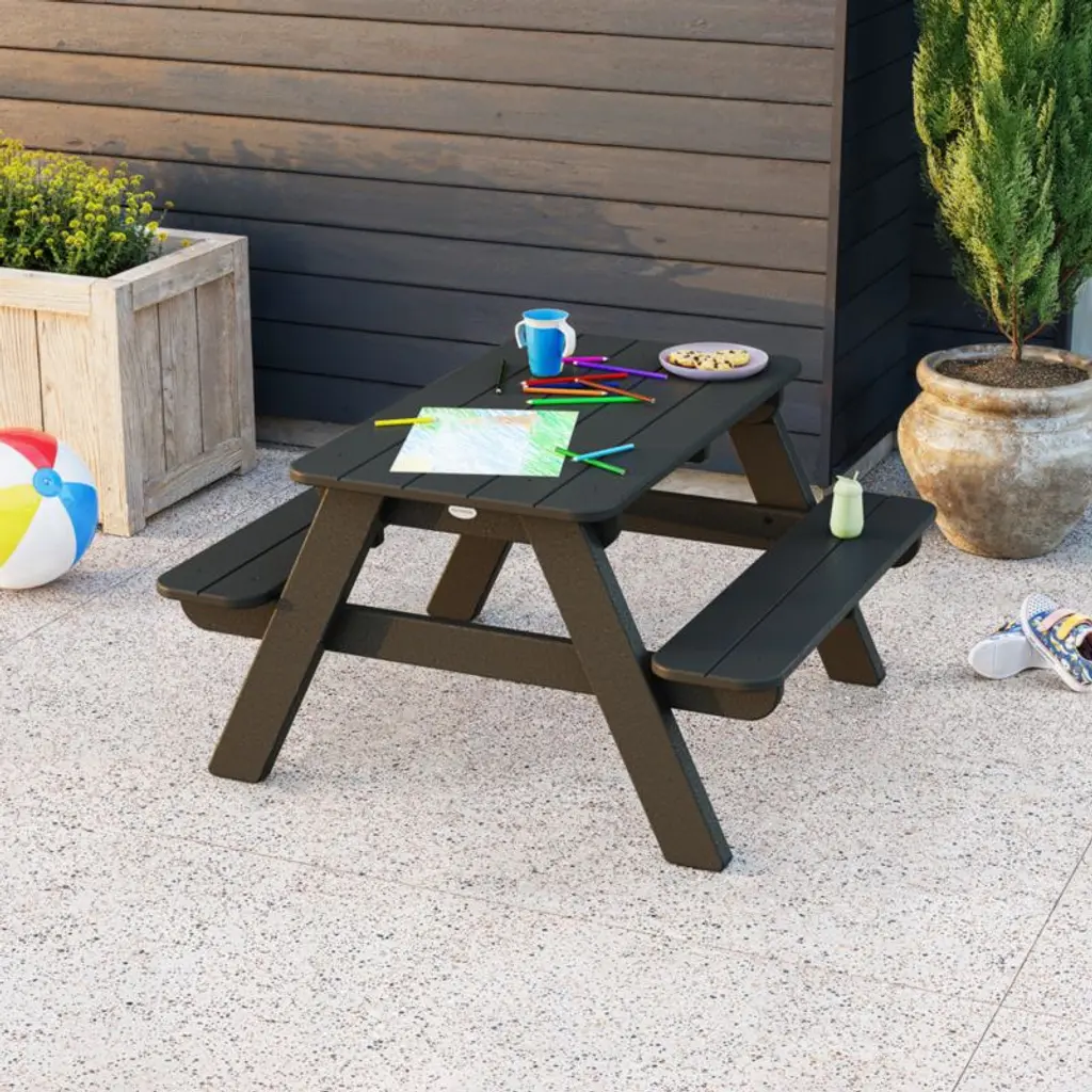 The Kids Picnic Table by POLYWOOD® is the perfect spot for snacktime or playtime. Made of weather-resistant POLYWOOD, a proprietary blend of plastics designed to last season after season, this kid-size table is easy to cleanso the only thing you need to do is sit back and watch your little ones have some backyard fun.