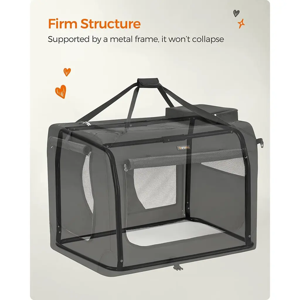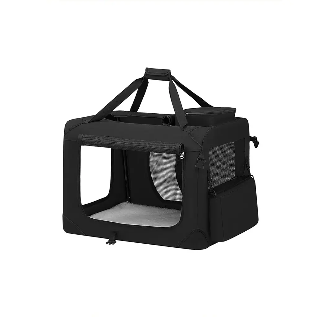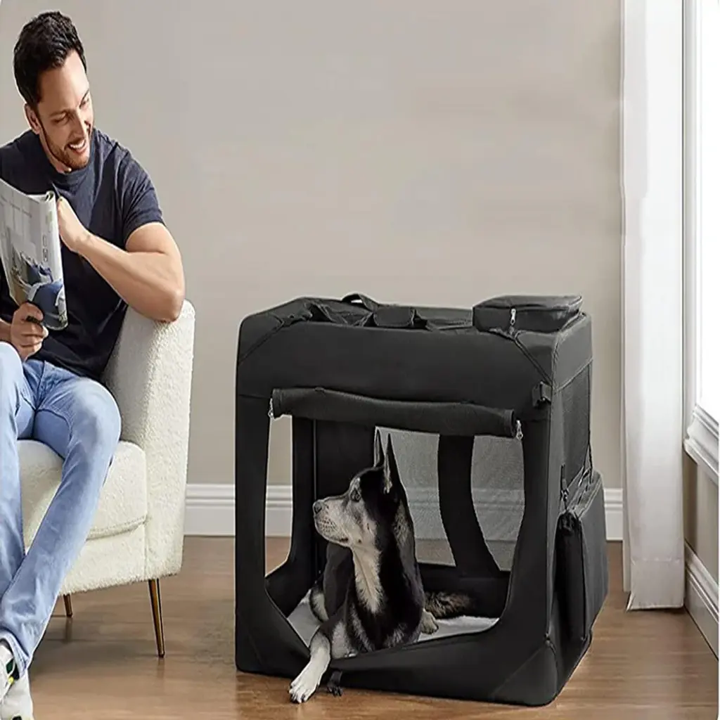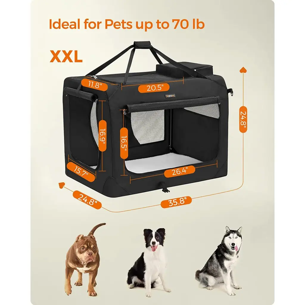 Black Portable Collapsible Pet Crate With Metal Frame And Handle, Storage Pockets - Xxl