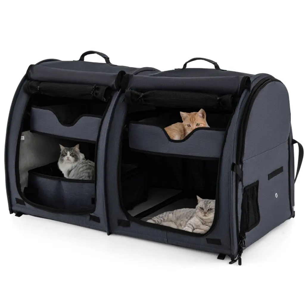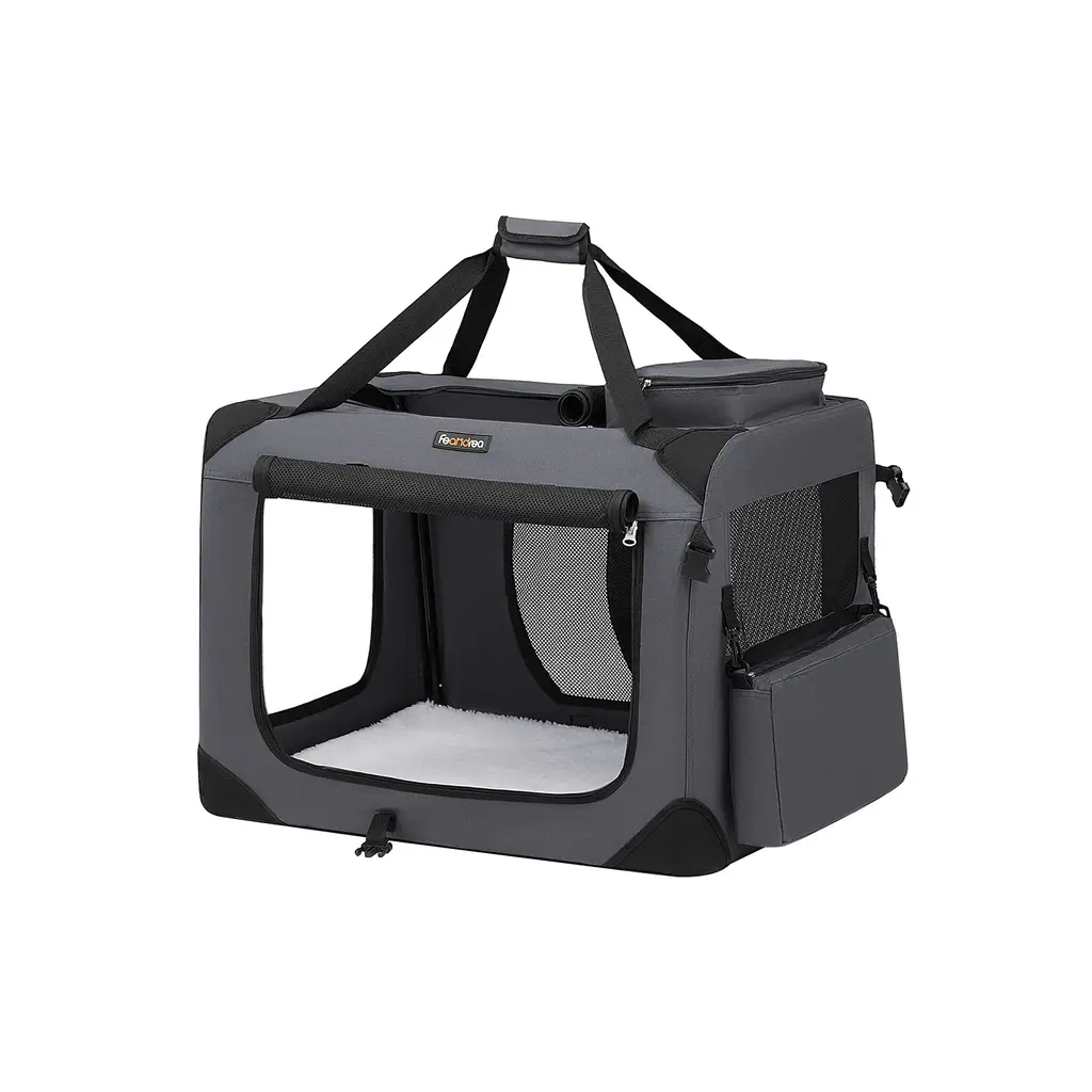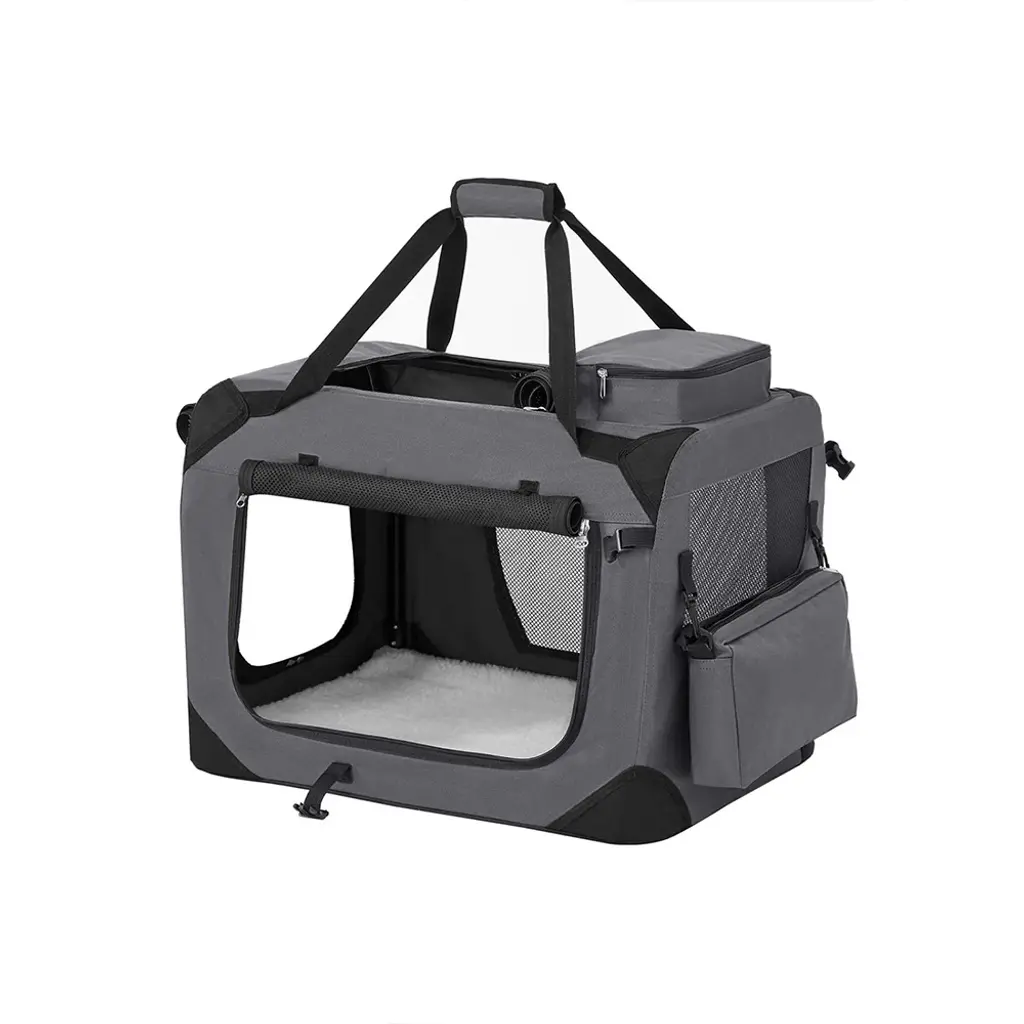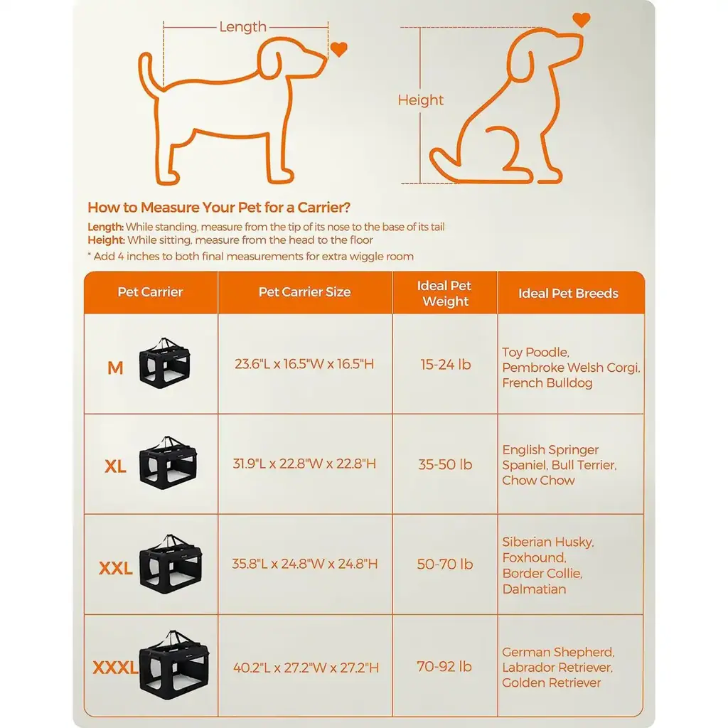 Black Portable Collapsible Pet Crate With Metal Frame And Handle, Storage Pockets - Xxl