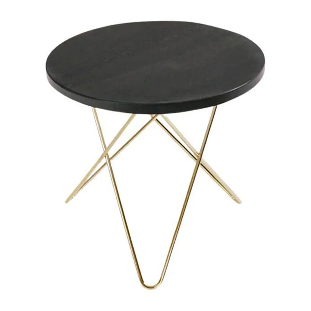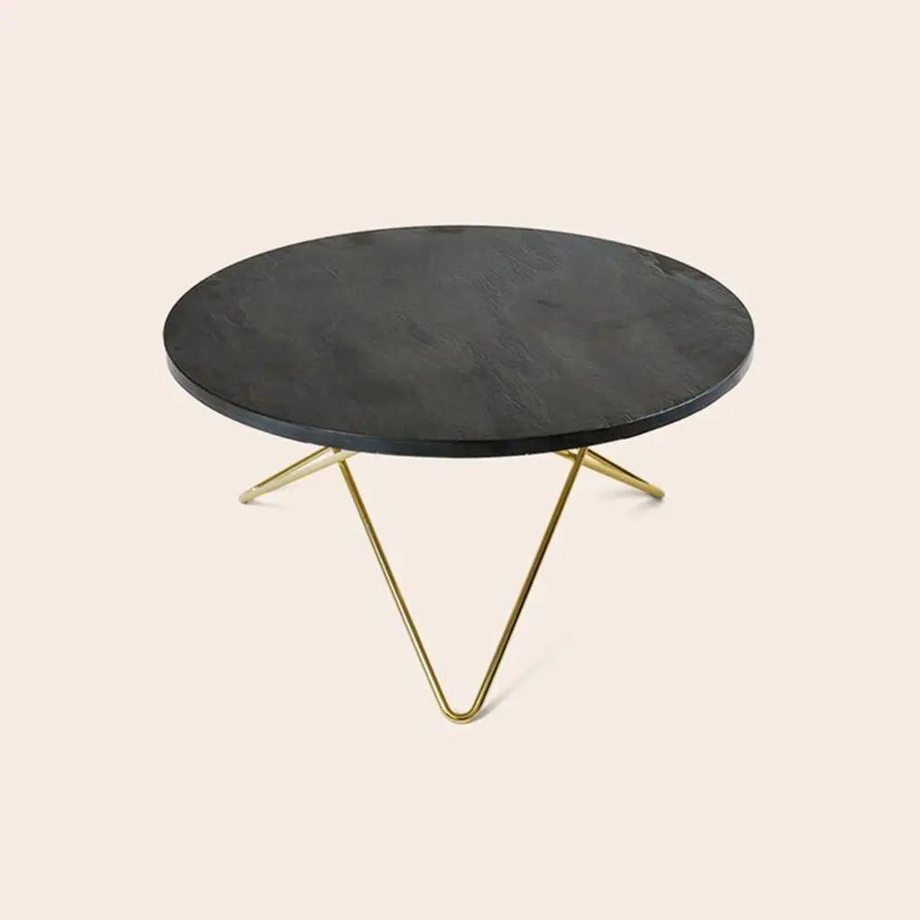 Black slate and brass "O" Table by OxDenmarqDimensions: D 80 x H 40 cmMaterials: Brass, SlateAvailable in other size. Different top and frame options availableOX DENMARQ is a Danish design brand aspiring to make beautiful handmade furniture, accessories and lighting in natural high-quality materials in fair prices. " When we set out back in 2003, we were primarily working with vegetable-tanned saddle leather thus the name OX was a tribute to our unique leather and the animal providing it.The other half of our name, DENMARQ, is chosen to emphasize that we are a Danish design brand based on the Danish design tradition and that most of our furniture is produced in Denmark. However, DENMARQ not only refers to our home country, but also to the co-founder and designer - DENnis MARQuart.Before finishing his design studies at the Copenhagen Design University, Dennis Marquart did a Blacksmith education. This background is extremely useful when developing and designing products."OX DENMARQ handmade products will only get more beautiful as time passes and natural patina sets in.Many OX products are shaped around marble or vegetable-tanned saddle leather. Stone and leather are materials that will, and should, get marks over time. But they will also age with a very special beauty. When you learn to appreciate the beauty of maturity and of time passing, you have learned to appreciate patina the way it should be appreciated.