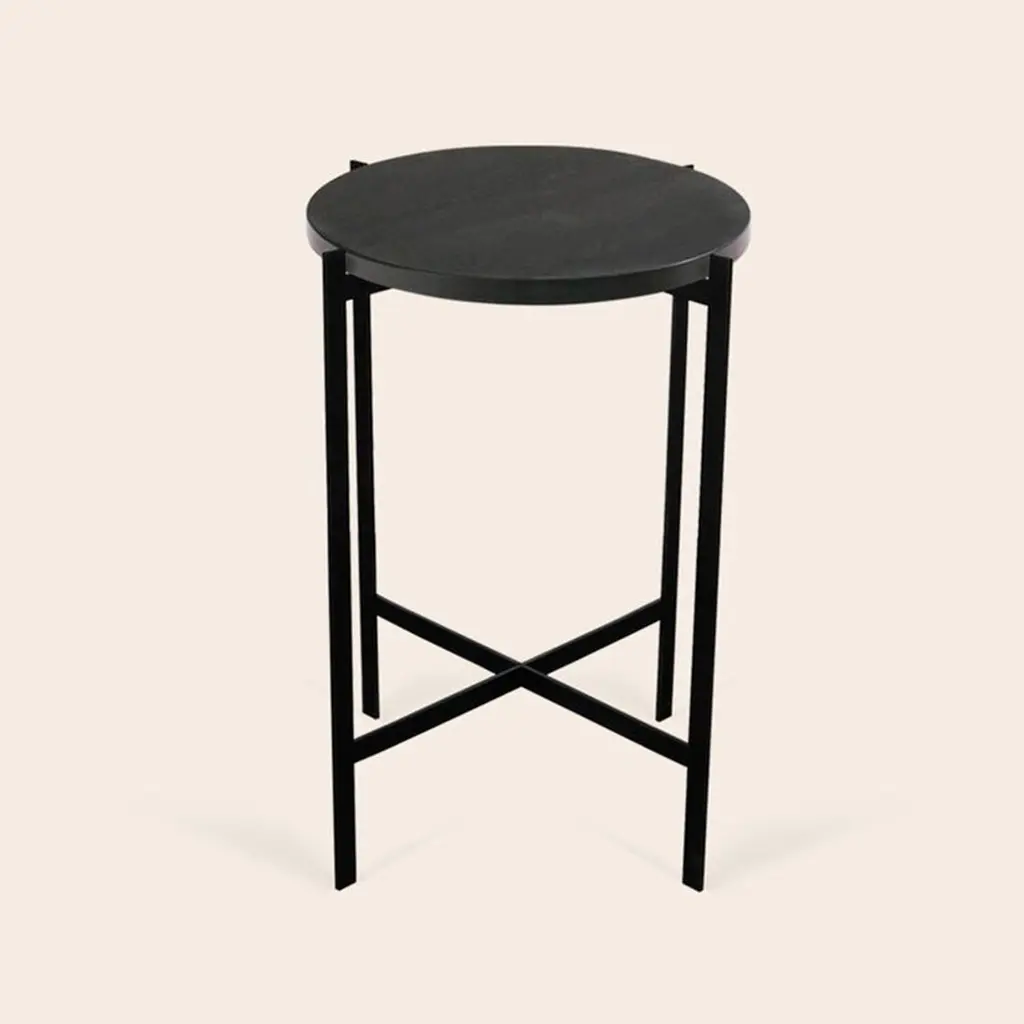 Black slate small deck table by Ox DenmarqDimensions: D 43 x W 43 x H 55 cmMaterials: Steel, slateAlso available: Different top options availableOX DENMARQ is a Danish design brand aspiring to make beautiful handmade furniture, accessories and lighting in natural high-quality materials in fair prices. " When we set out back in 2003, we were primarily working with vegetable-tanned saddle leather thus the name OX was a tribute to our unique leather and the animal providing it.The other half of our name, DENMARQ, is chosen to emphasize that we are a Danish design brand based on the Danish design tradition and that most of our furniture is produced in Denmark. However, DENMARQ not only refers to our home country, but also to the co-founder and designer - DENnis MARQuart.Before finishing his design studies at the Copenhagen Design University, Dennis Marquart did a Blacksmith education. This background is extremely useful when developing and designing products."OX DENMARQ handmade products will only get more beautiful as time passes and natural patina sets in.Many OX products are shaped around marble or vegetable-tanned saddle leather. Stone and leather are materials that will, and should, get marks over time. But they will also age with a very special beauty. When you learn to appreciate the beauty of maturity and of time passing, you have learned to appreciate patina the way it should be appreciated.