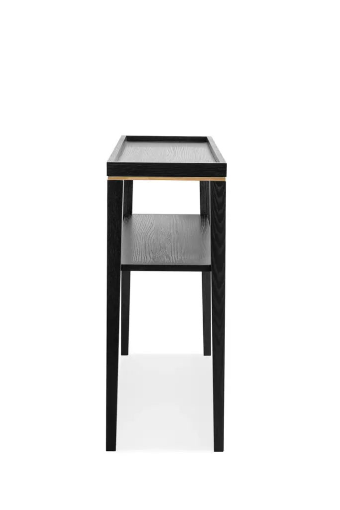 Create a striking impact in your living interior with the Otium Console Table. Crafted in wenge oak veneer with solid wood legs and finished in a brushed brass stainless steel, this is one piece which truly stands out. The central shelf provides a little extra storage and is versatile in storing or displaying items.