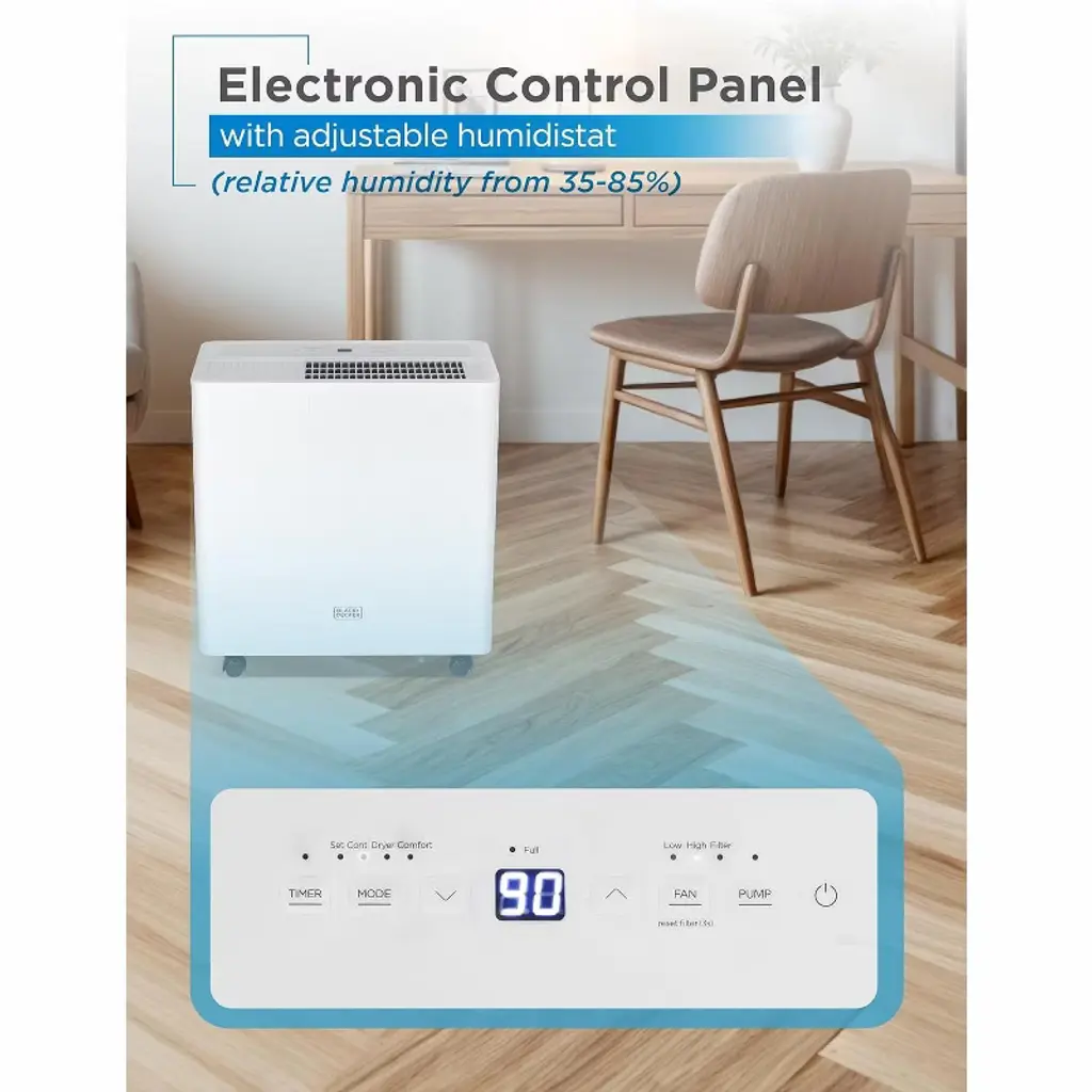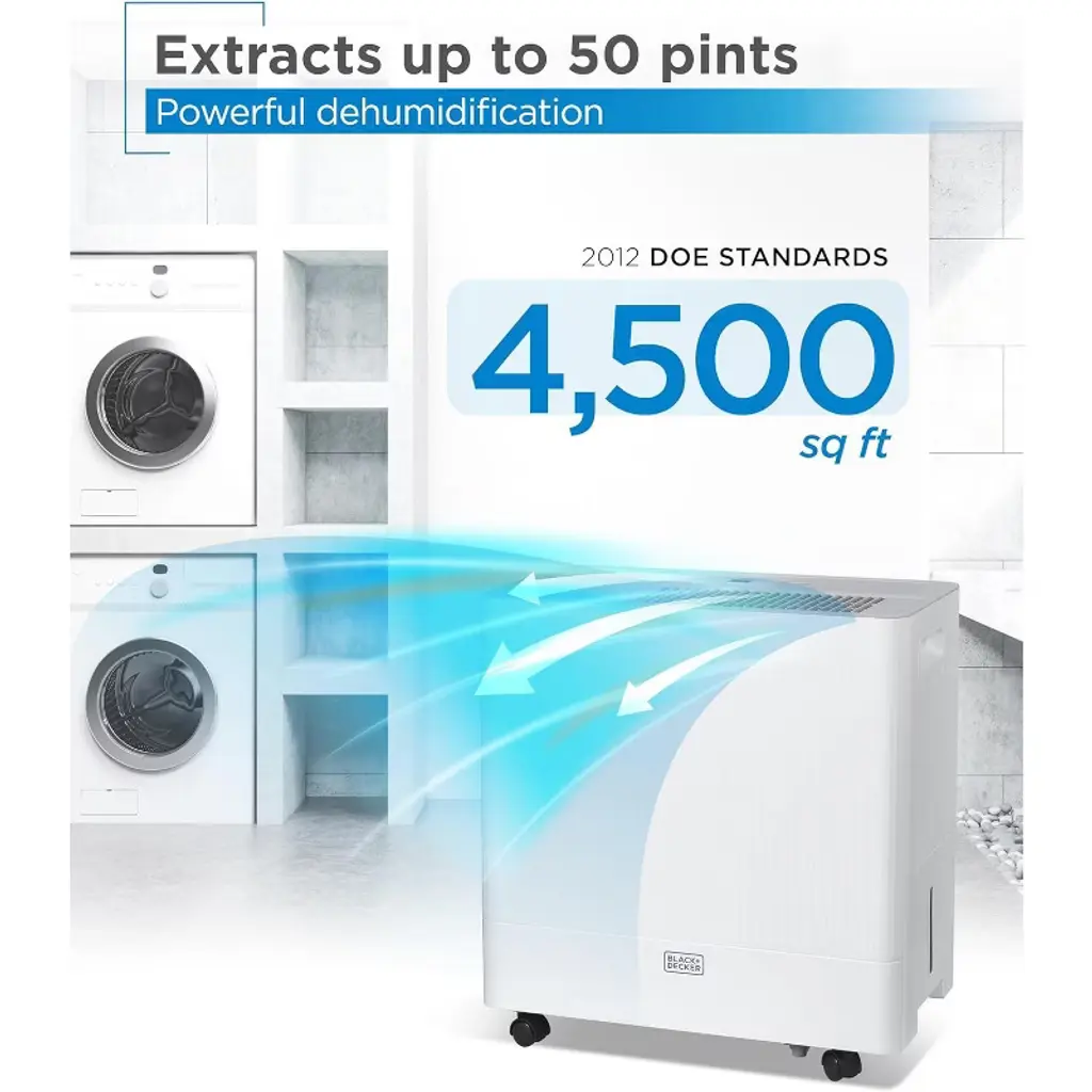 Black+decker 50-pint Portable Dehumidifier With Built-in Pump For Spaces Up To 4500 Sq. Ft., Energy Star, Drain Hoses & Bucket, Bd50pmwsa