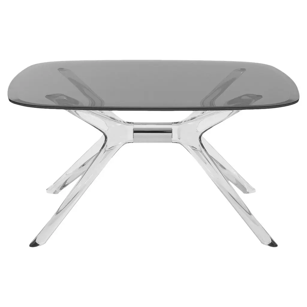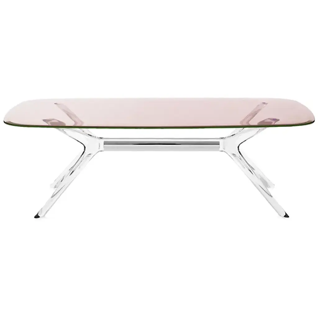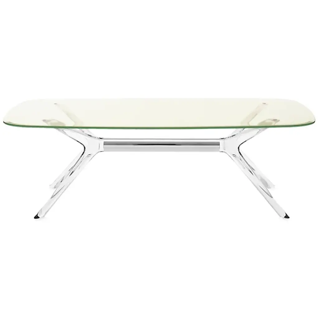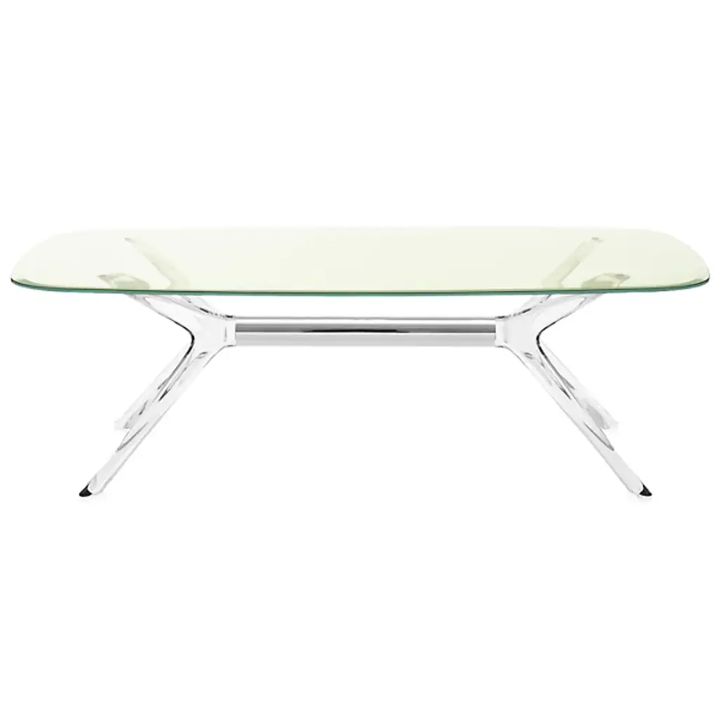 The Blast Table by Philippe Starck has a rectangular top made of laminated crystal. The table top is available in five colors with legs featured in chrome or bronze. 51” wide and with a frame made of thermoplastic, the top is connected via a metalized aluminum pipe. With a contemporary design, the Blast Table will add a modern décor to any space.