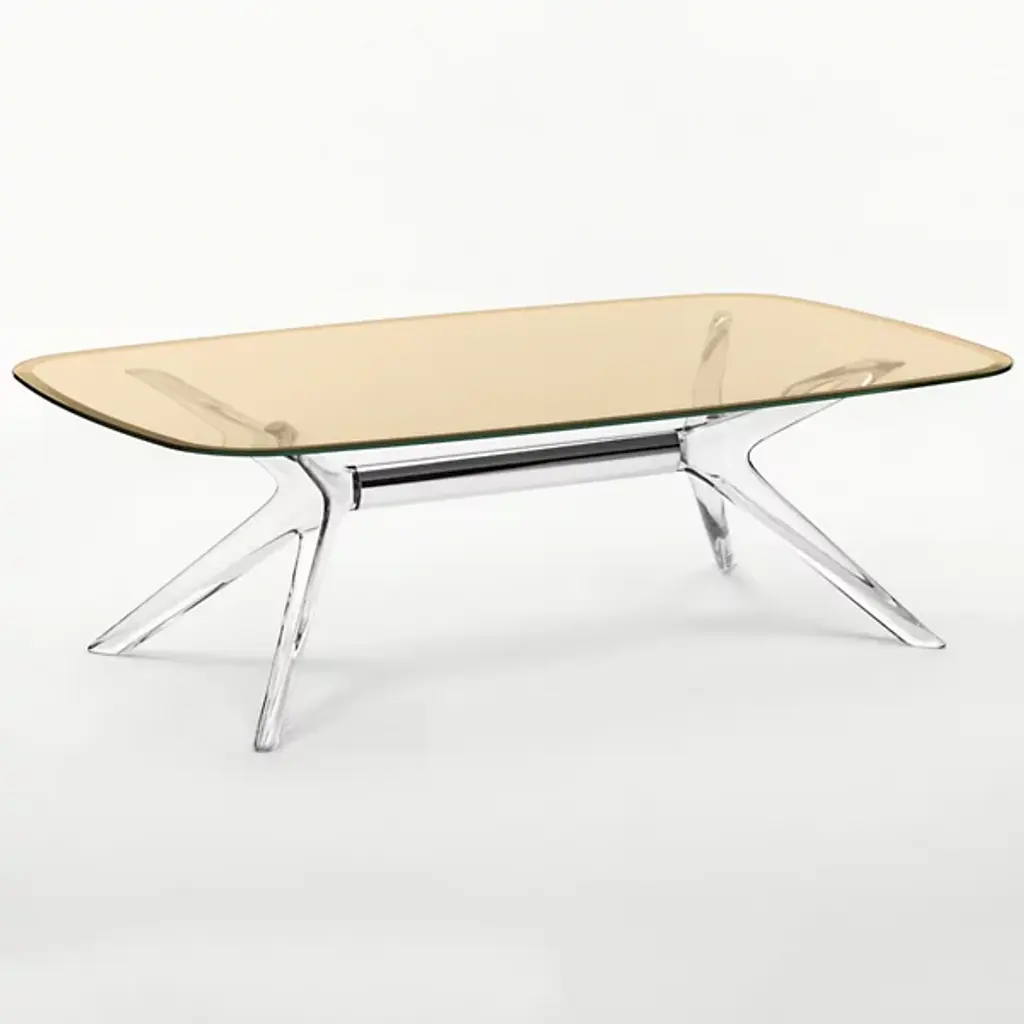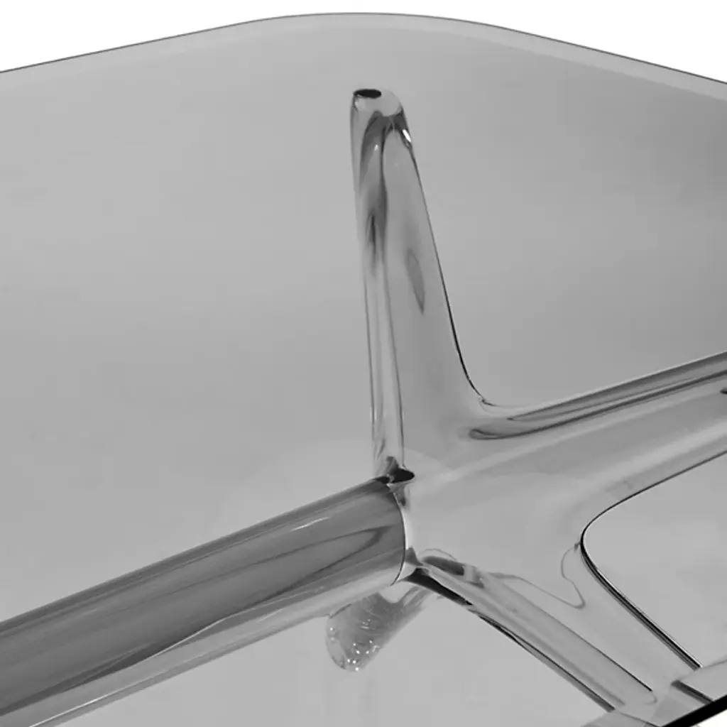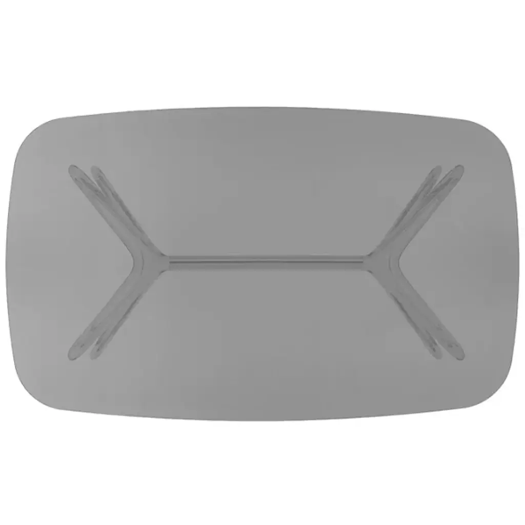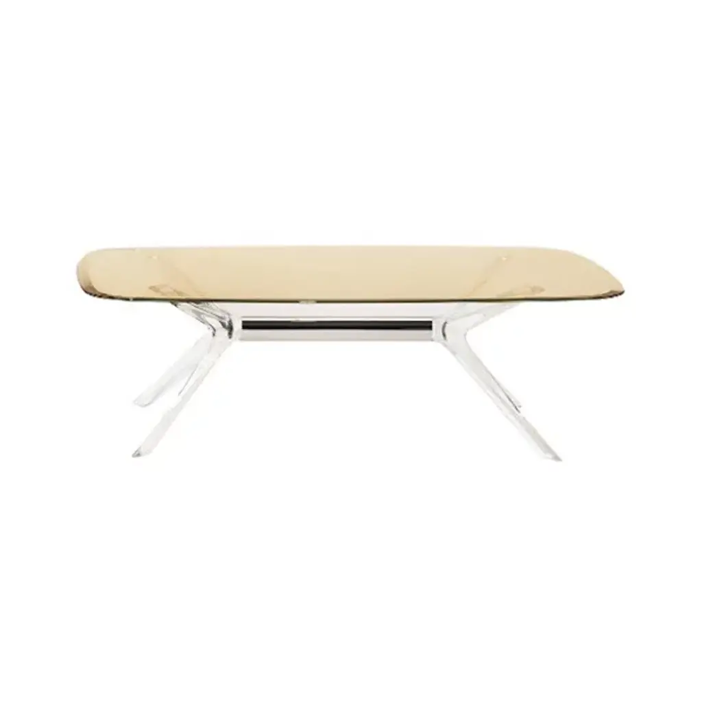 The Blast Table by Philippe Starck has a rectangular top made of laminated crystal. The table top is available in five colors with legs featured in chrome or bronze. 51” wide and with a frame made of thermoplastic, the top is connected via a metalized aluminum pipe. With a contemporary design, the Blast Table will add a modern décor to any space.
