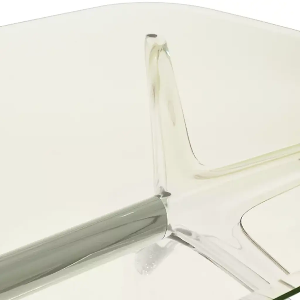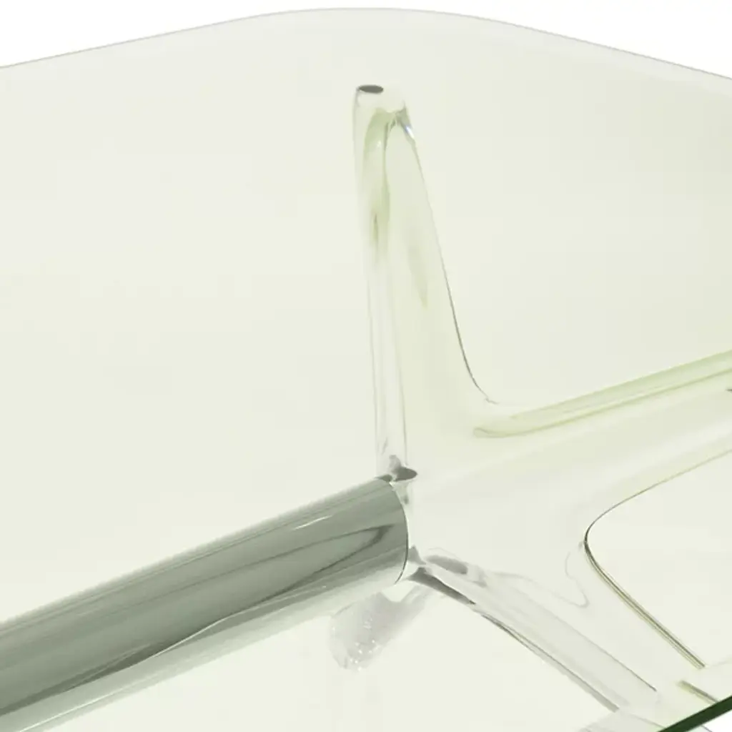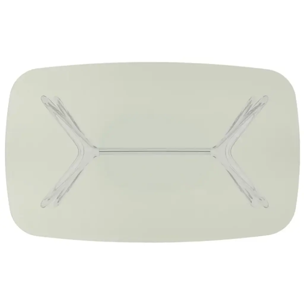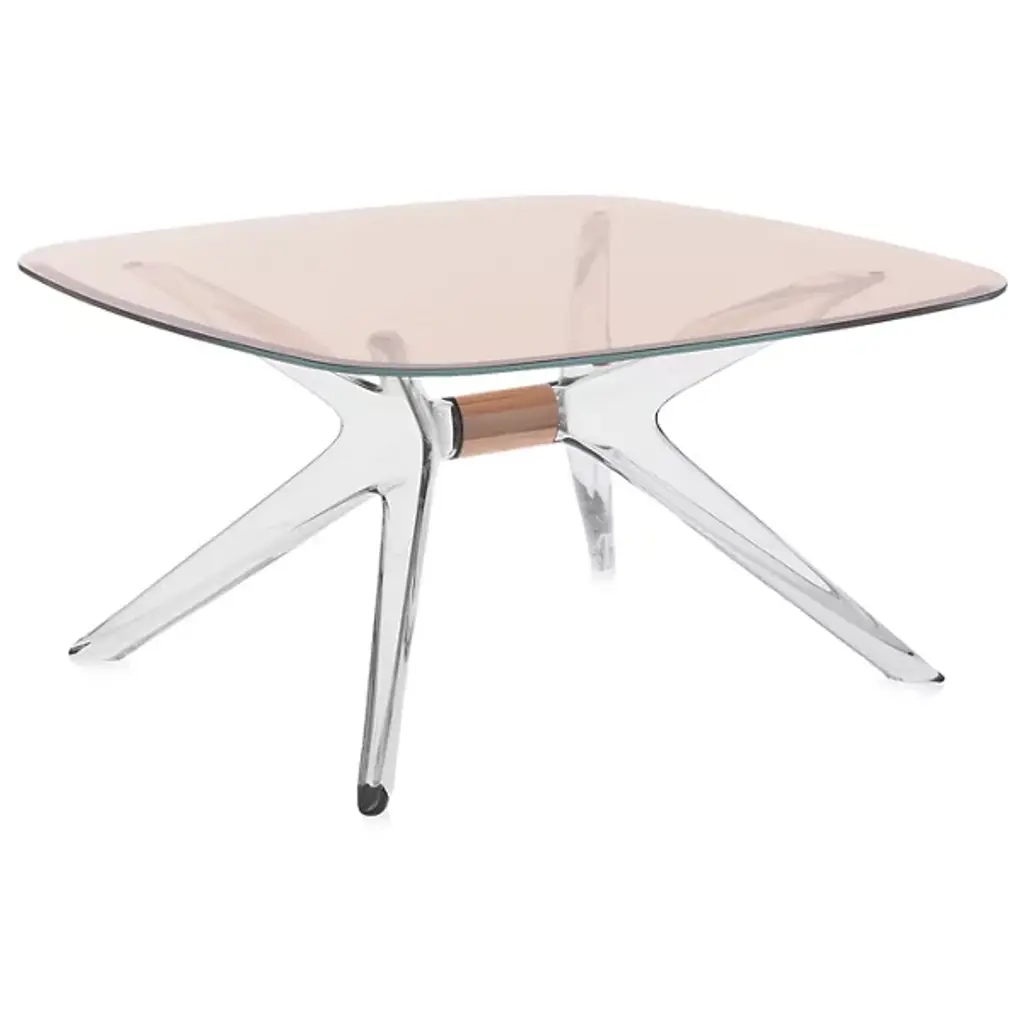 The Blast Table by Philippe Starck has a rectangular top made of laminated crystal. The table top is available in five colors with legs featured in chrome or bronze. 51” wide and with a frame made of thermoplastic, the top is connected via a metalized aluminum pipe. With a contemporary design, the Blast Table will add a modern décor to any space.