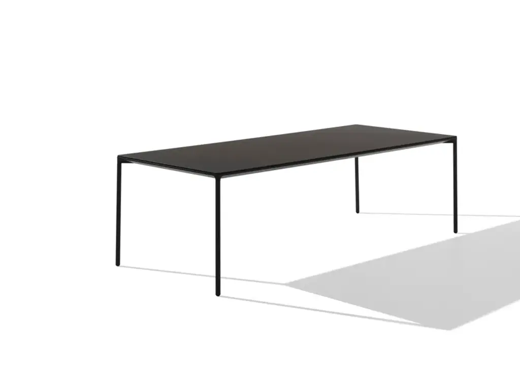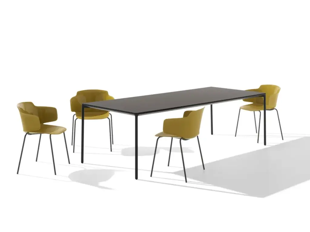 Bloom is a rectangular table with aluminium frame, available in two sizes and also in the square version. The collection includes poufs, sofas, small sofas and different armchairs, designed to create a seating system.