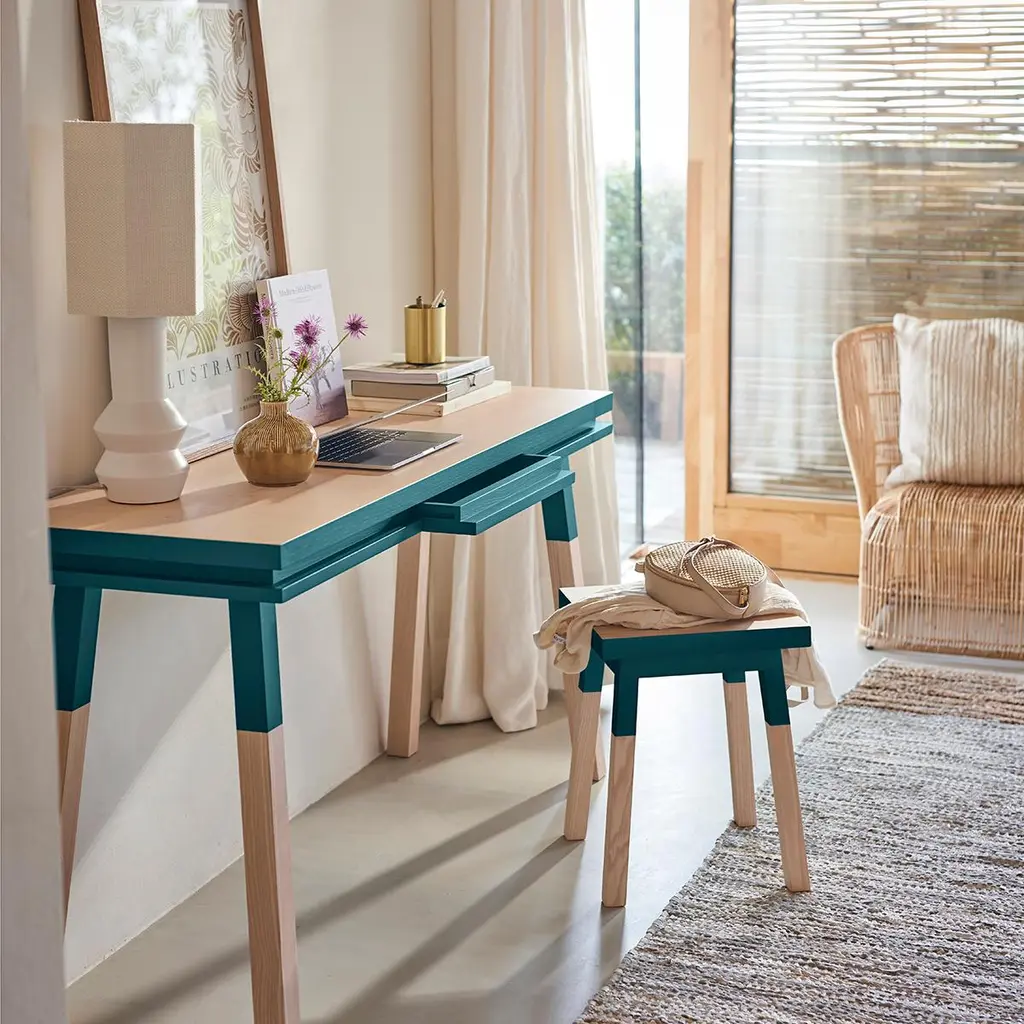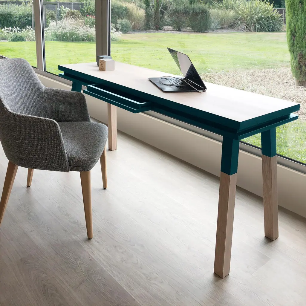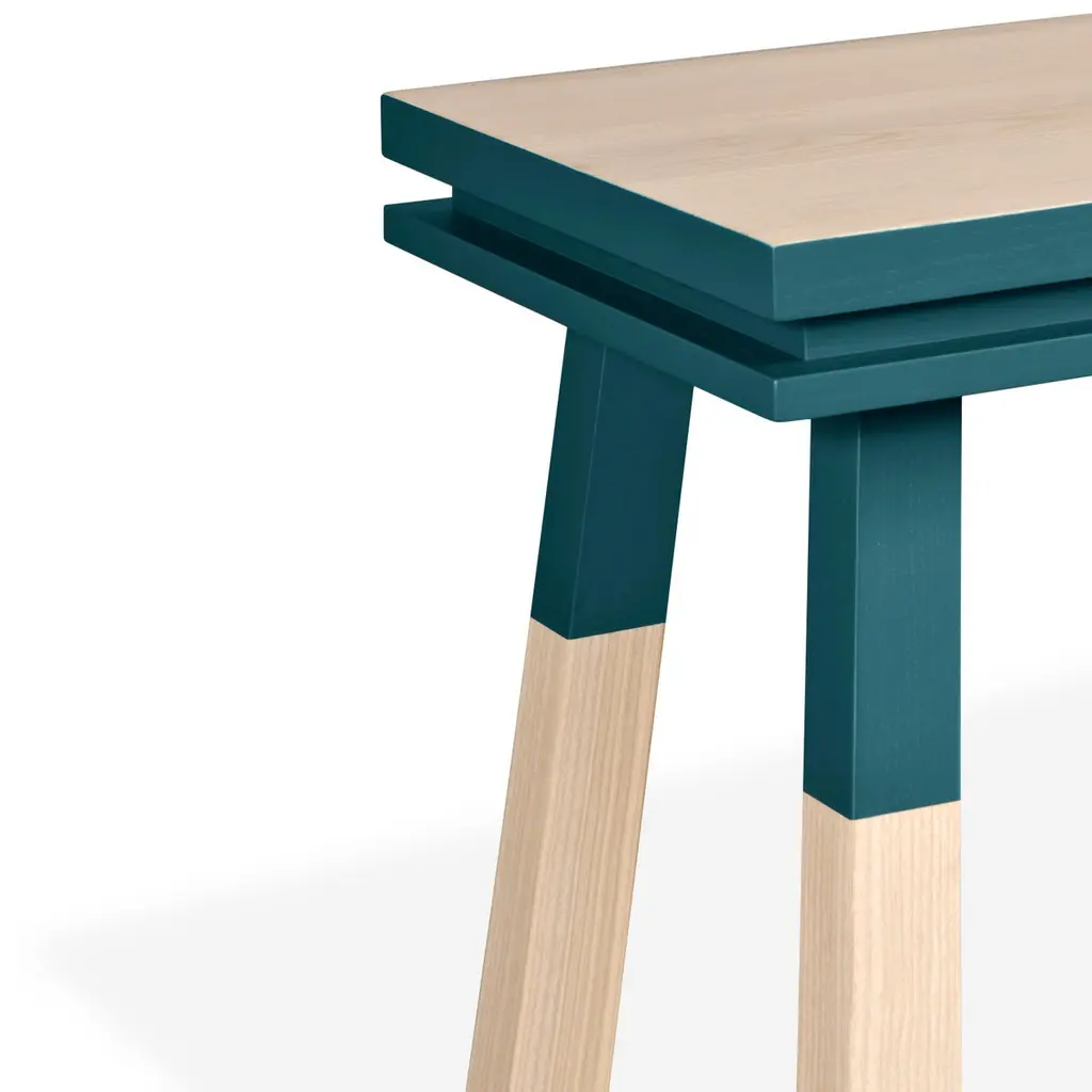 This sea blue rectangular console table / desk is designed by Eric Gizard in Paris. It is 100% made of solid ash wood from sustainably managed and PEFC certified French forests. Collection ÉGÉEThis desk is part of the ÉGÉE collection designed by Eric Gizard in Paris. Eric combines the sleek and refined codes of Scandinavian design with natural materials and muted and "trendy" colorful lacquers. Mon Petit Meuble FrancaisProvides exclusively 100% Made in France Furniture. The manufacture and finishes are of very high-end quality, carried out in French craft workshops, in the west countryside of France: Loire and Bretagne. Solid ash comes from sustainably managed French forests.