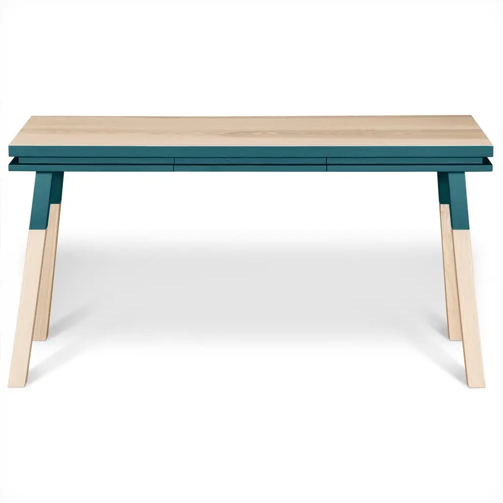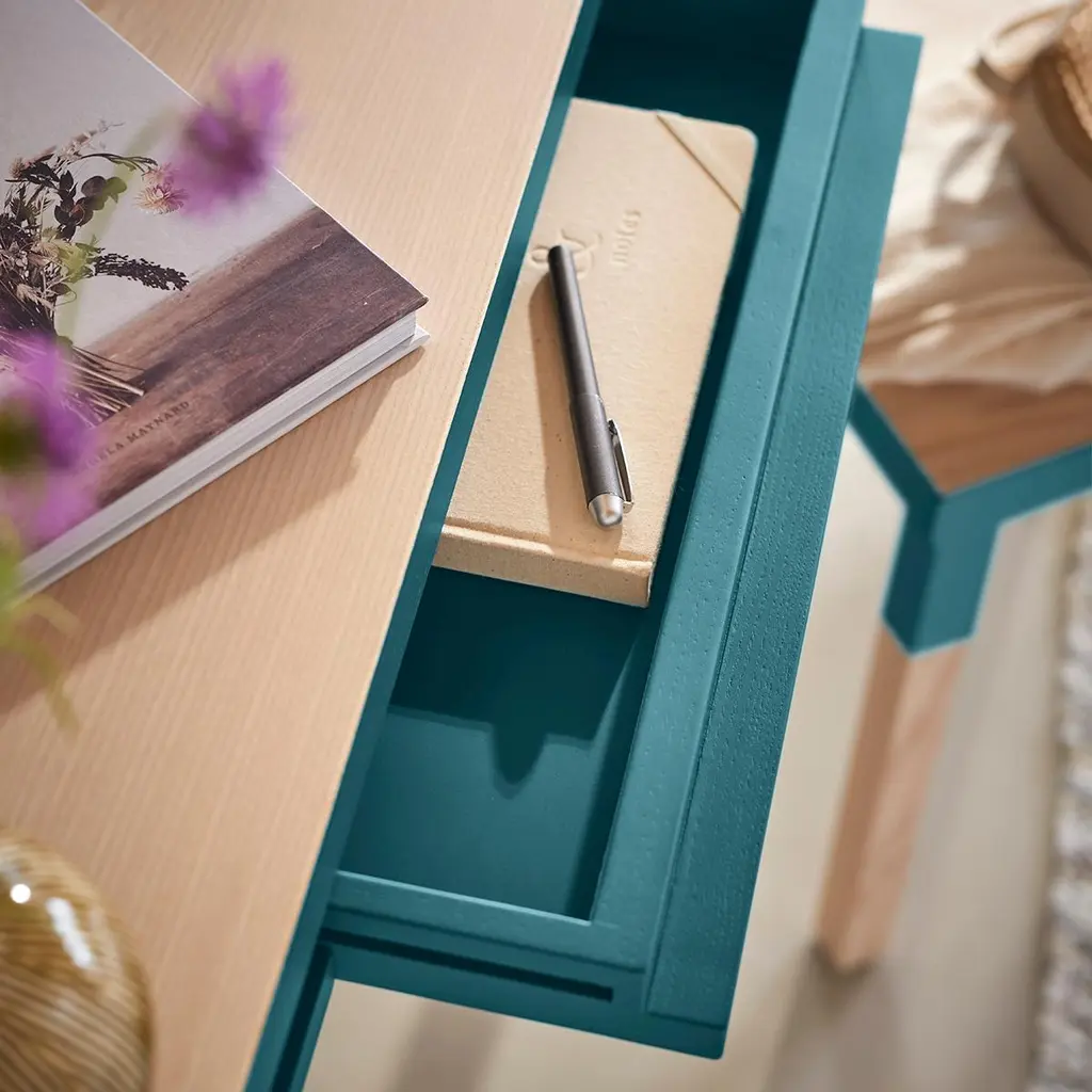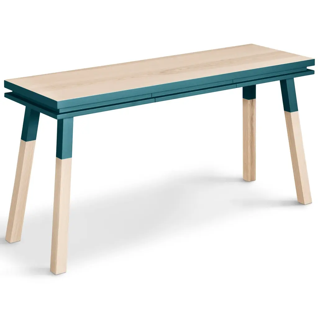 This sea blue rectangular console table / desk is designed by Eric Gizard in Paris. It is 100% made of solid ash wood from sustainably managed and PEFC certified French forests. Collection ÉGÉEThis desk is part of the ÉGÉE collection designed by Eric Gizard in Paris. Eric combines the sleek and refined codes of Scandinavian design with natural materials and muted and "trendy" colorful lacquers. Mon Petit Meuble FrancaisProvides exclusively 100% Made in France Furniture. The manufacture and finishes are of very high-end quality, carried out in French craft workshops, in the west countryside of France: Loire and Bretagne. Solid ash comes from sustainably managed French forests.