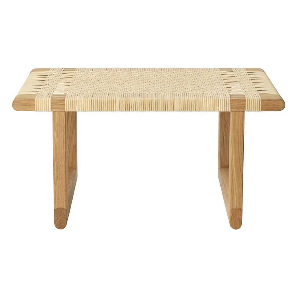 Functional, durable, and ready to adapt to the changing needs of your life, the BM Table Bench from Carl Hansen & Son is ready to bring straightforward, Scandinavian style to your home. Crafted from solid oak wood and double-woven canework, this elegant and solid bench is handmade by master craftsmen in Denmark. Completely versatile and suitable for a variety of locations throughout your home, this bench offers a simple seat in your entryway or living area or can act as a sturdy side table in your bedroom or favorite relaxation area. Pair with a simple floor lamp and a cozy armchair and you'll have a stylish reading nook that is all your own. Highlights