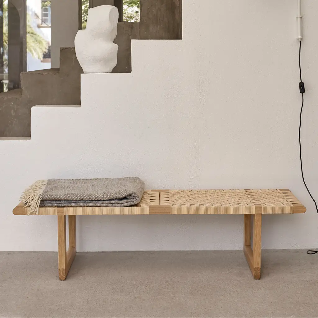 Originally unveiled in 1958 by Børge Mogensen, Carl Hansen & Søn reintroduces the versatile Table Bench design, expertly crafted in oak heartwood with cabinetry joints, rounded edges and a double-woven wicker seat. BM0488 perfectly encapsulate the Danish master's calm aesthetic and sense of visual clarity. The soulful but sturdy standalone piece is just as appropriate in an entrance hall or at the end of a bed as it as a coffee table or side table in a dining or living room.