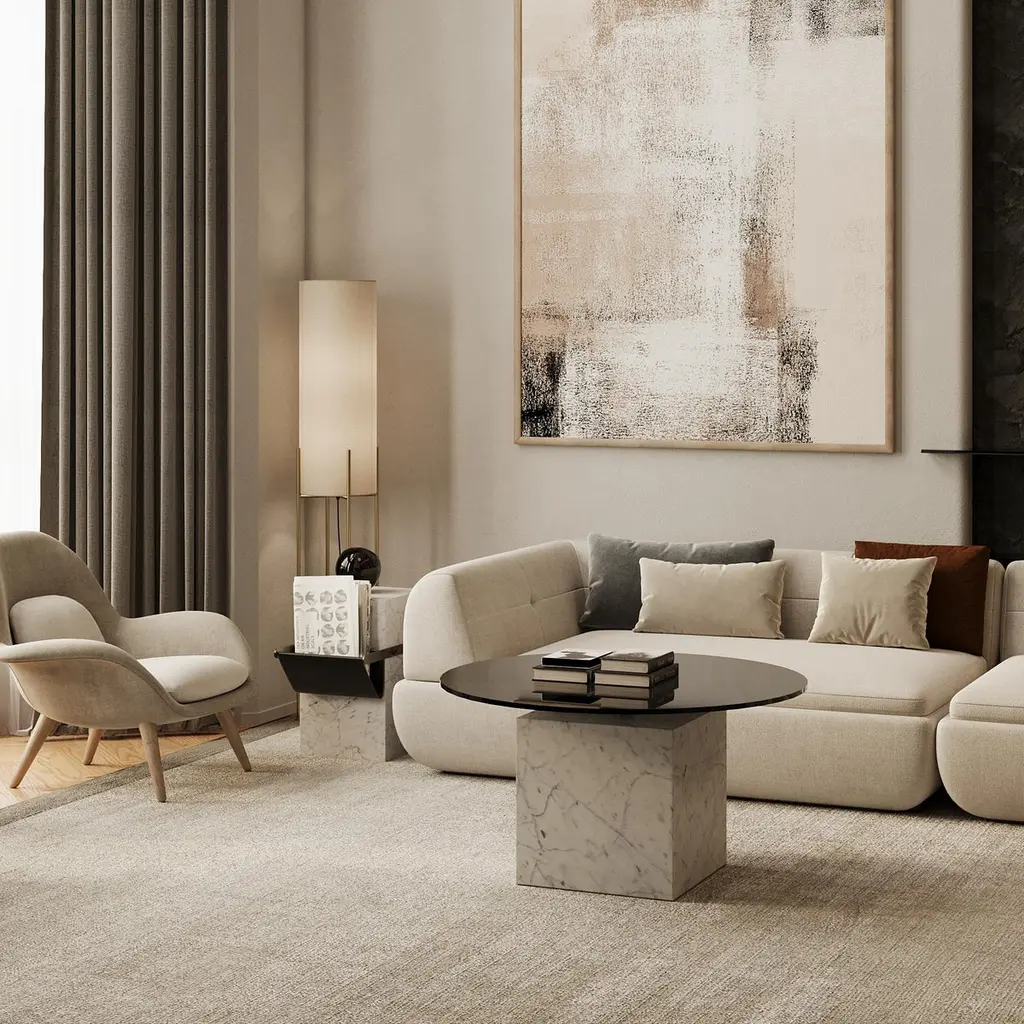 This statement-making coffee table features a rectangular marble base with unique natural veining, topped with a sleek glass surface. Its modern silhouette and contrasting materials create a striking focal point for your living area. This design is the epitome of balance, the right balance between design, function and materials. This table integrates harmoniously, enhancing the charm of your living room, entrance or any other space. Ideal for placing your magazines, books, drinks or any decorative item, it becomes the a stylish and subtly striking addition to your living area.Available in various marble options!Please note, Marble is a natural material and often displays great variations in background colour, veining distribution and veining pattern therefore expect slight variations in the veining and tones upon purchase.Dimensions:9048 cm