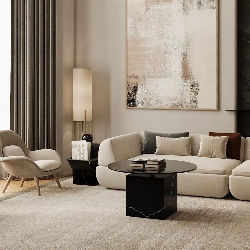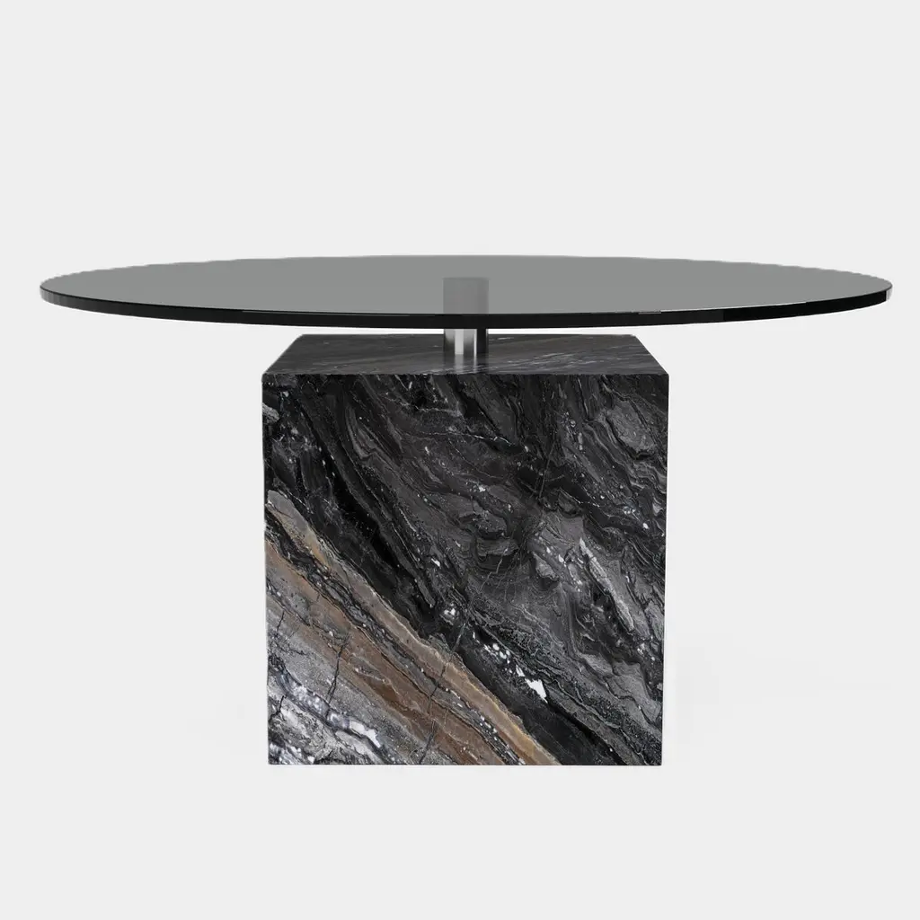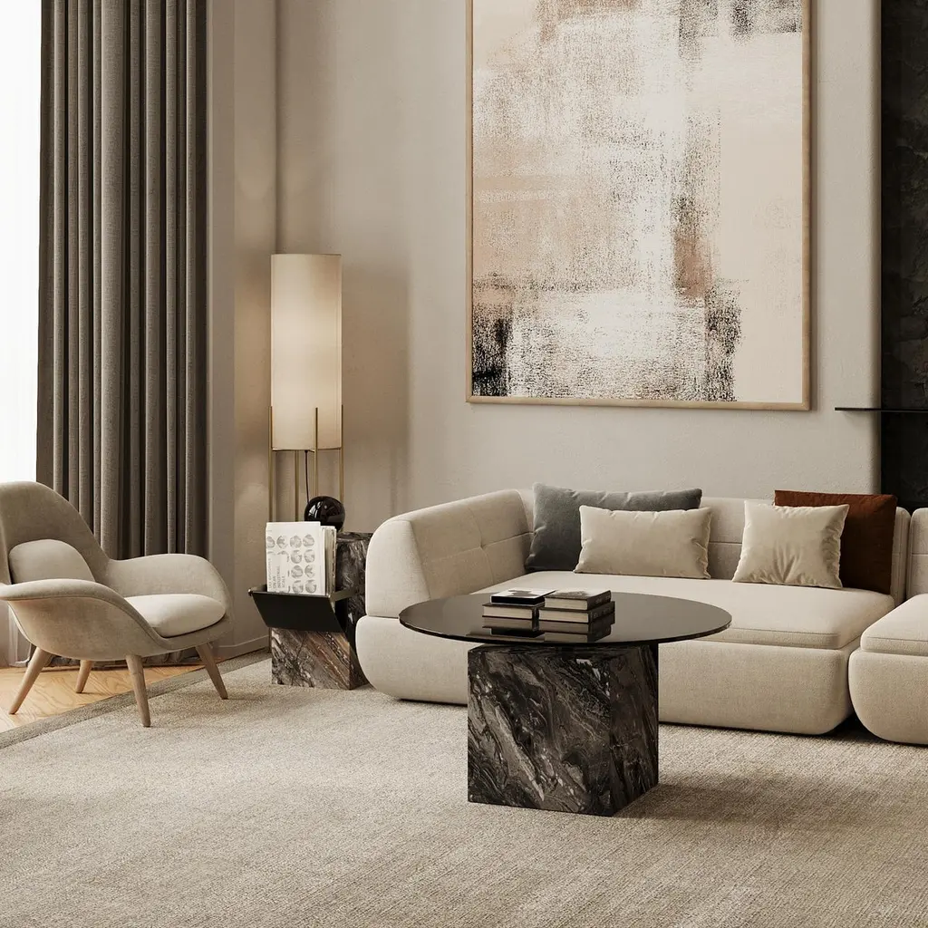 This statement-making coffee table features a rectangular marble base with unique natural veining, topped with a sleek glass surface. Its modern silhouette and contrasting materials create a striking focal point for your living area. This design is the epitome of balance, the right balance between design, function and materials. This table integrates harmoniously, enhancing the charm of your living room, entrance or any other space. Ideal for placing your magazines, books, drinks or any decorative item, it becomes the a stylish and subtly striking addition to your living area.Available in various marble options!Please note, Marble is a natural material and often displays great variations in background colour, veining distribution and veining pattern therefore expect slight variations in the veining and tones upon purchase.Dimensions:9048 cm