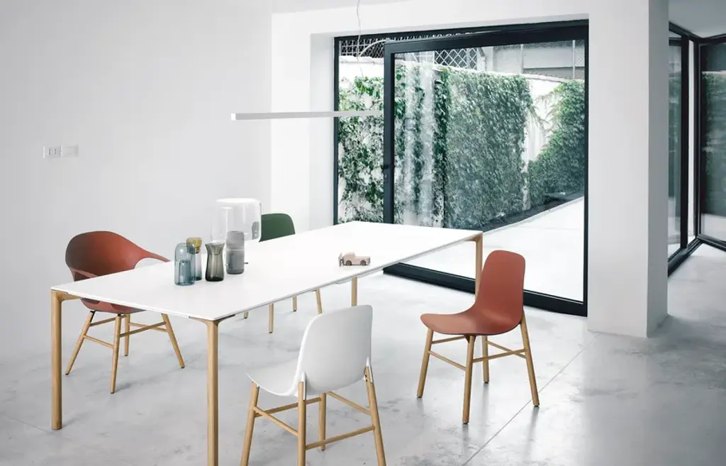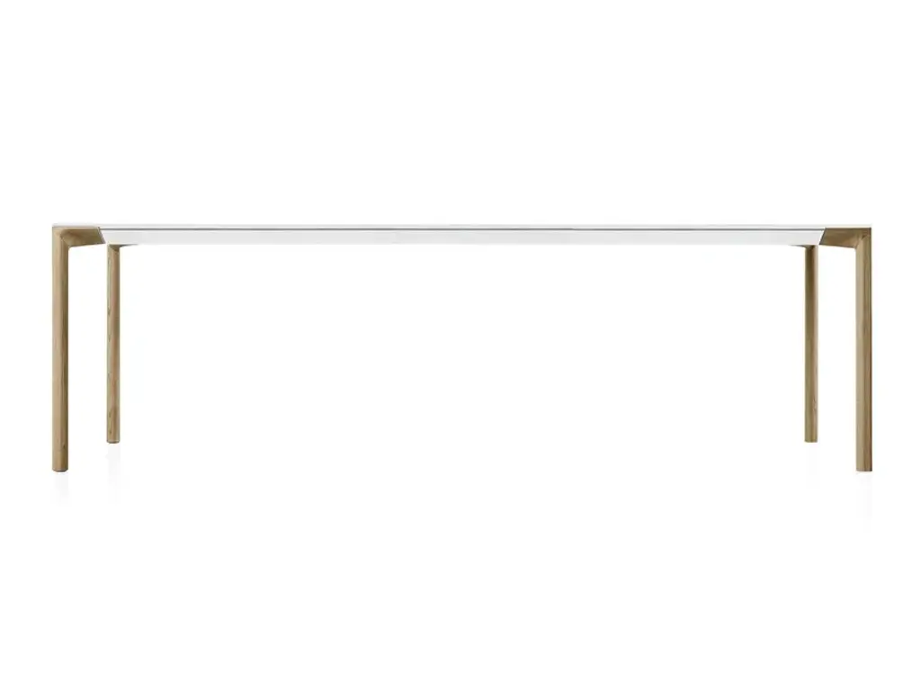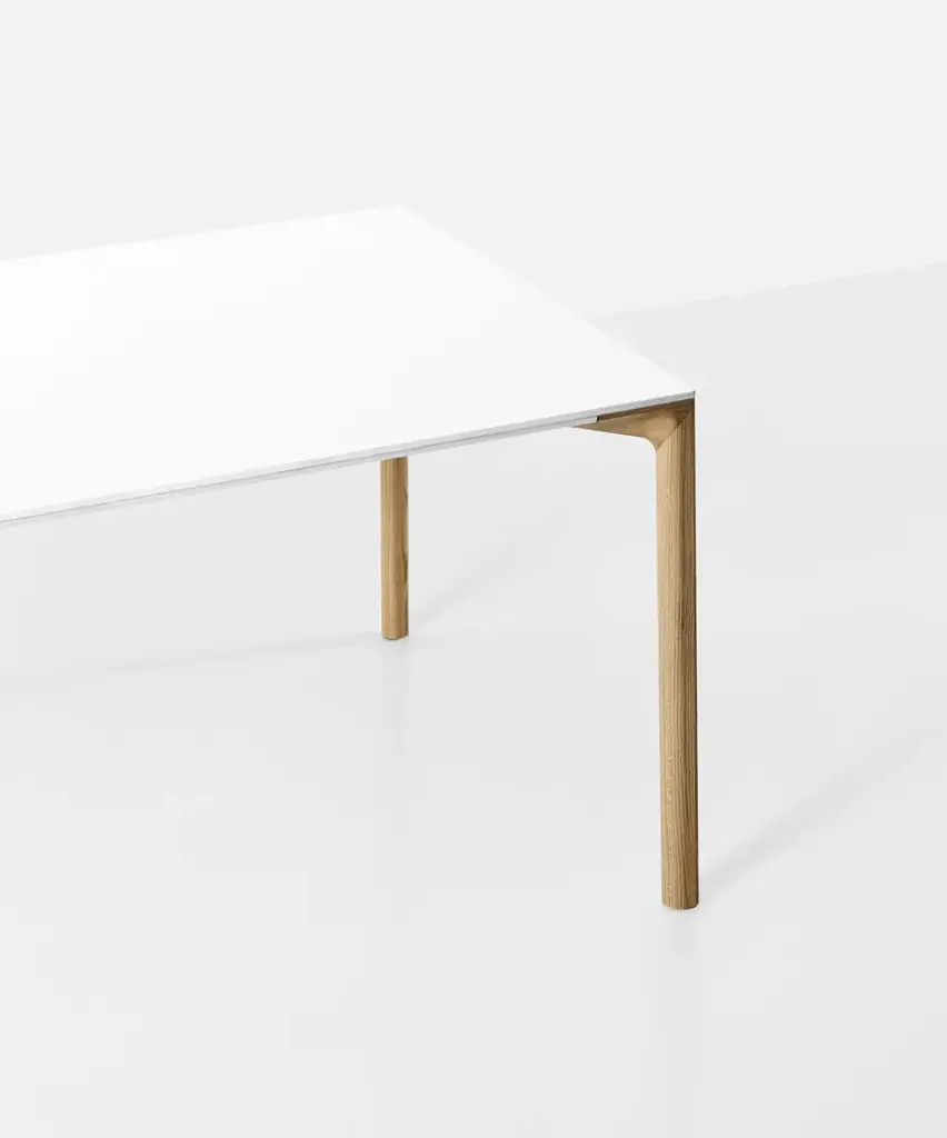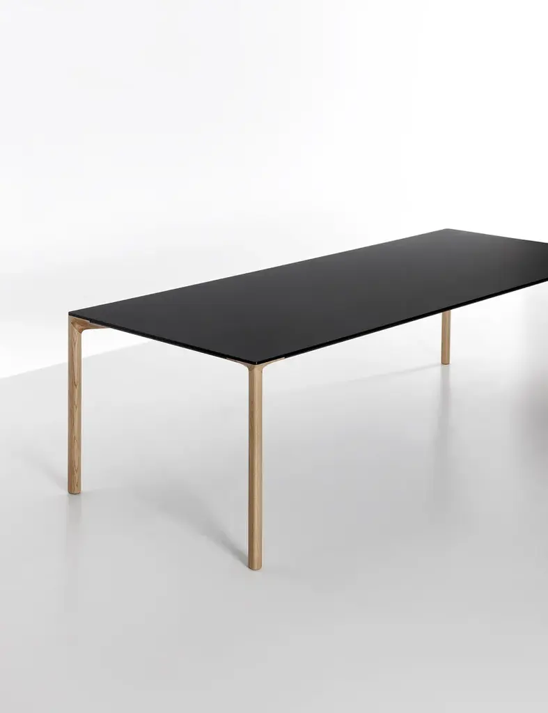 2011, Kristalia embarked on a new challenge launched by the designers LucidiPevere: to design a cement table. In 2013, the table called Boiacca is a new challenge: to switch from the material quality of cement to the natural quality of wood. The table called BOIACCA WOOD has legs in solid European oak wood, internally reinforced with a steel core. The top is available in Pure-white laminate or black Fenix-NTM® with a soft-touch effect. It has a black or white epoxy lacquered aluminium frame just like the top. The table has the warm appeal of wood, which perfectly matches the distinct and harmonious lines of its design. This new challenge for Kristalia, in partnership with the designer duo LucidiPevere, has led to the creation of an elegant and minimalist object.