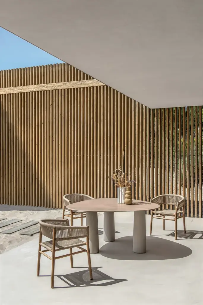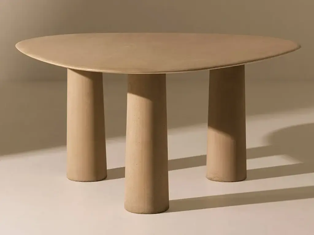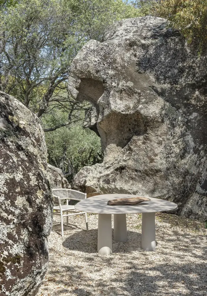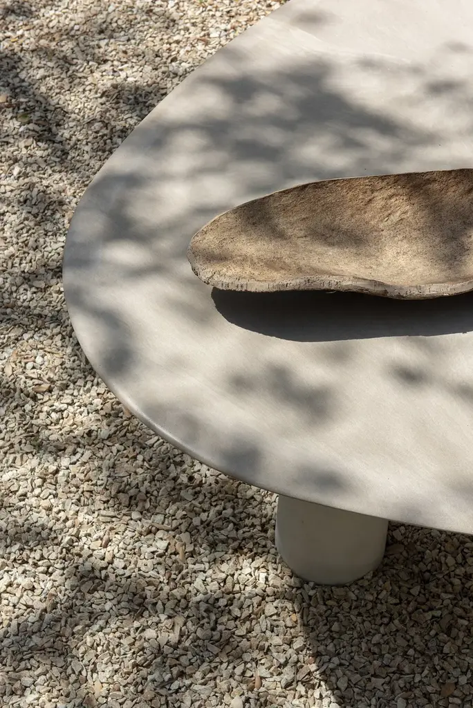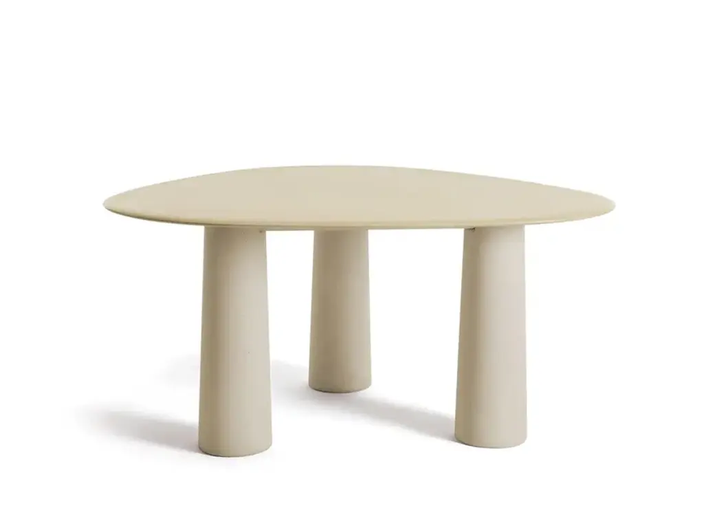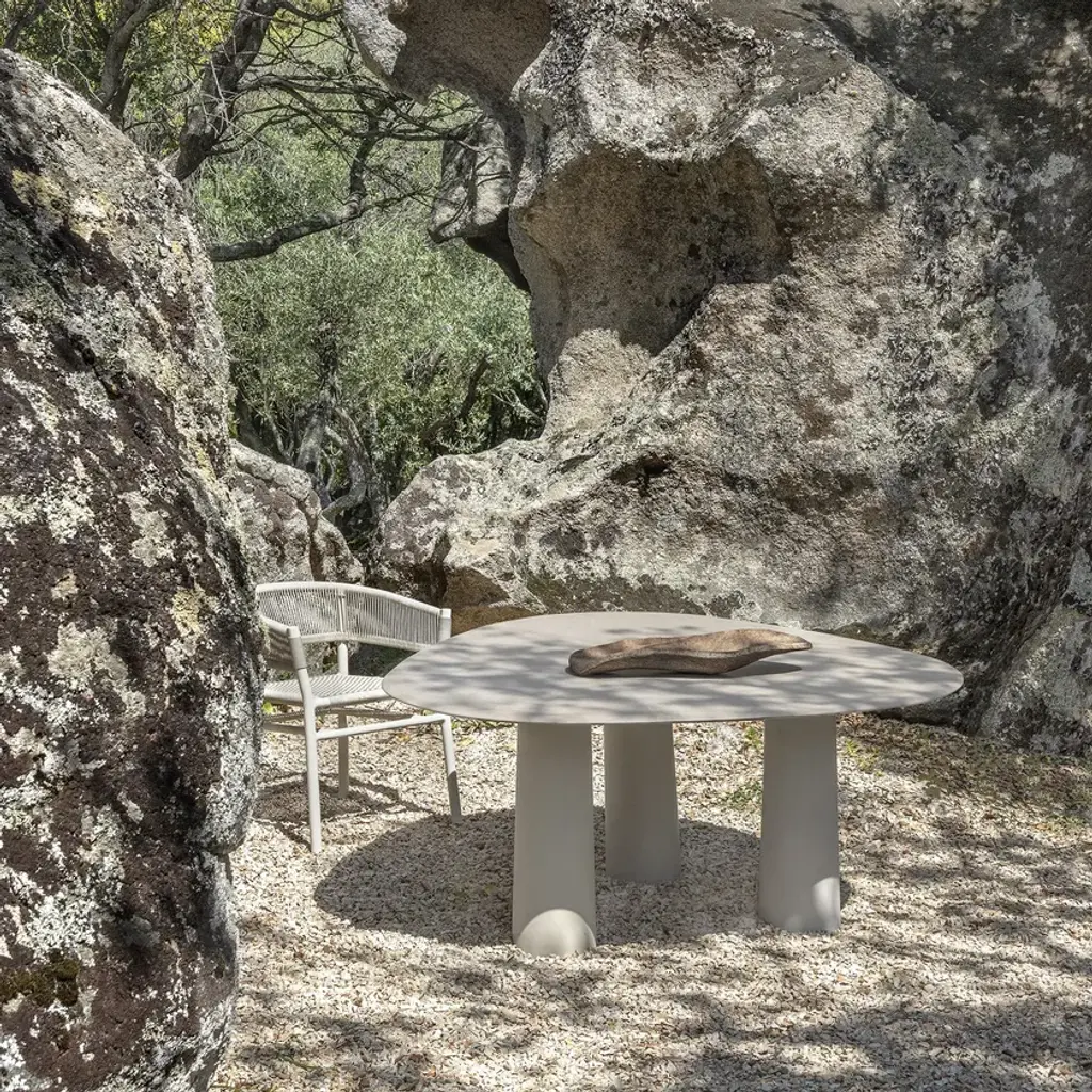 Bold is a triangular concrete garden table.Ethimo presents a new line of ‘sculptured’ tables that lend character to outdoor spaces. Inspired by megalithic architecture, Bold tables boast exceptionally expressive form and substance. Striking in their combination of materials, they reveal a free informal spirit that makes them perfect in any setting and the ideal solution for continually evolving outdoor scenarios.