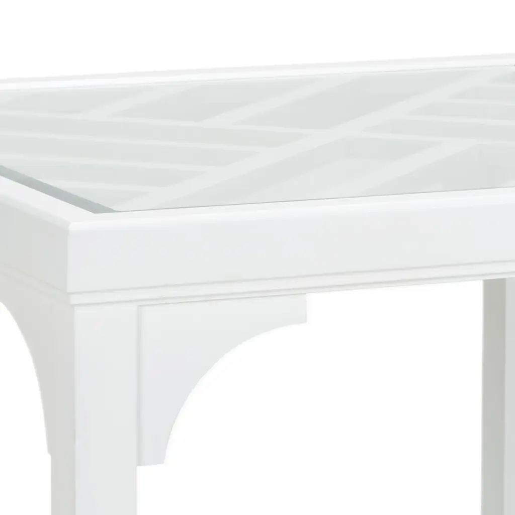 This exquisite piece features a beautifully crafted design with a beveled clear glass top, offering a touch of elegance and sophistication. Expertly designed by Jamie Merida, it combines style and functionality seamlessly.