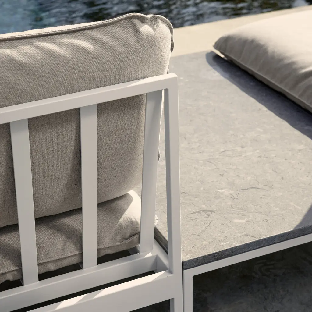 A clever modular sofa system, for all year use outdoors. Very versatile, very durable. Frames are made of aluminum. Features