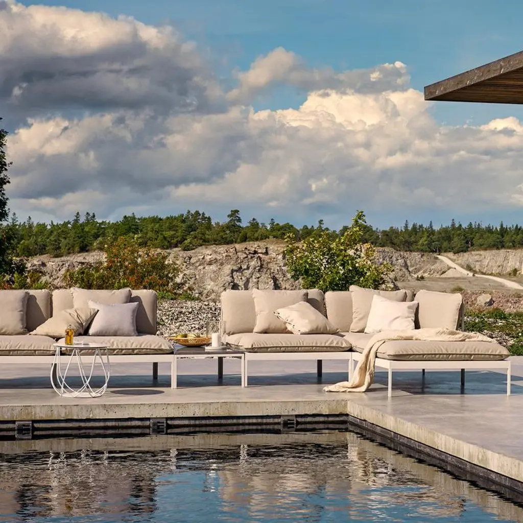 A clever modular sofa system, for all year use outdoors. Very versatile, very durable. Frames are made of aluminum. Features