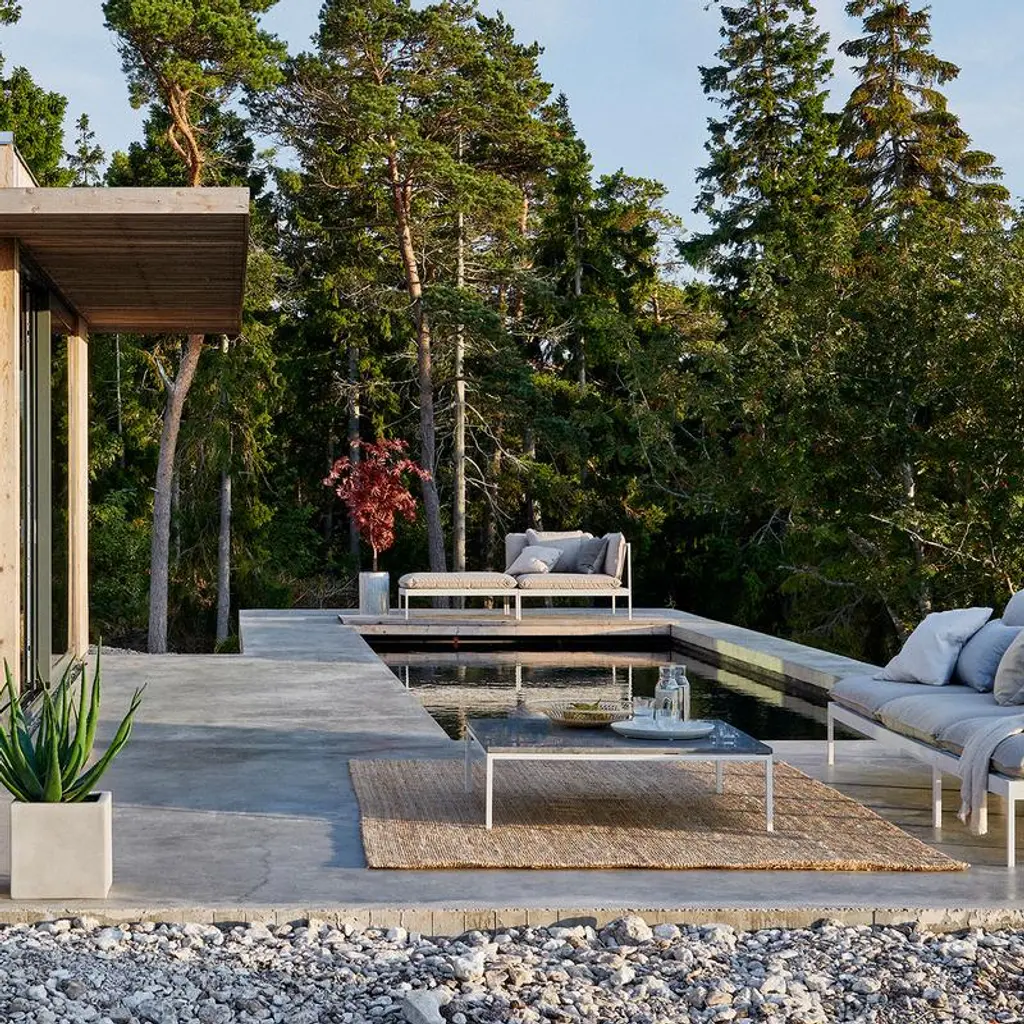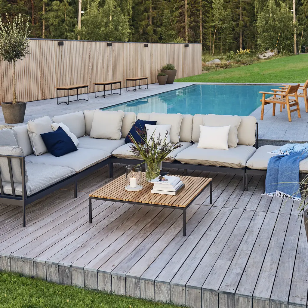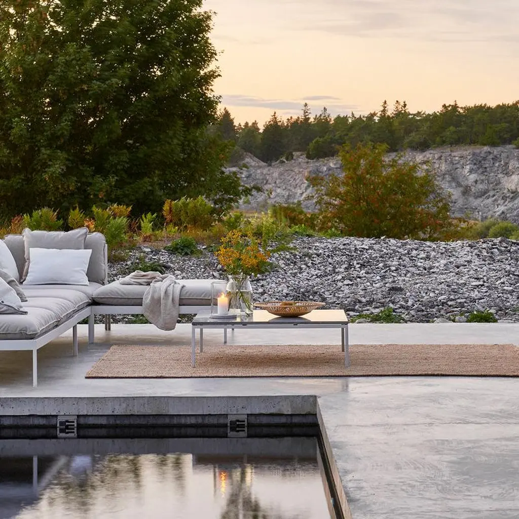 A clever modular sofa system, for all year use outdoors. Very versatile, very durable. Frames are made of aluminum. Features