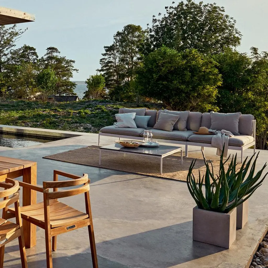 A clever modular sofa system, for all year use outdoors. Very versatile, very durable. Frames are made of aluminum. Features