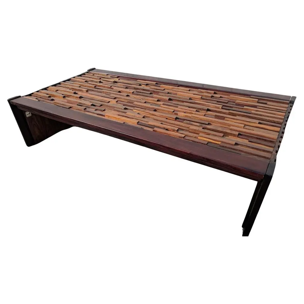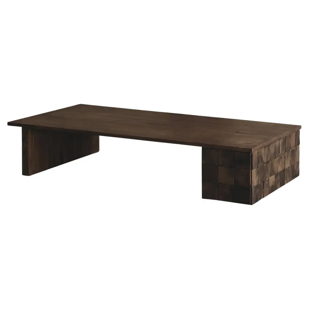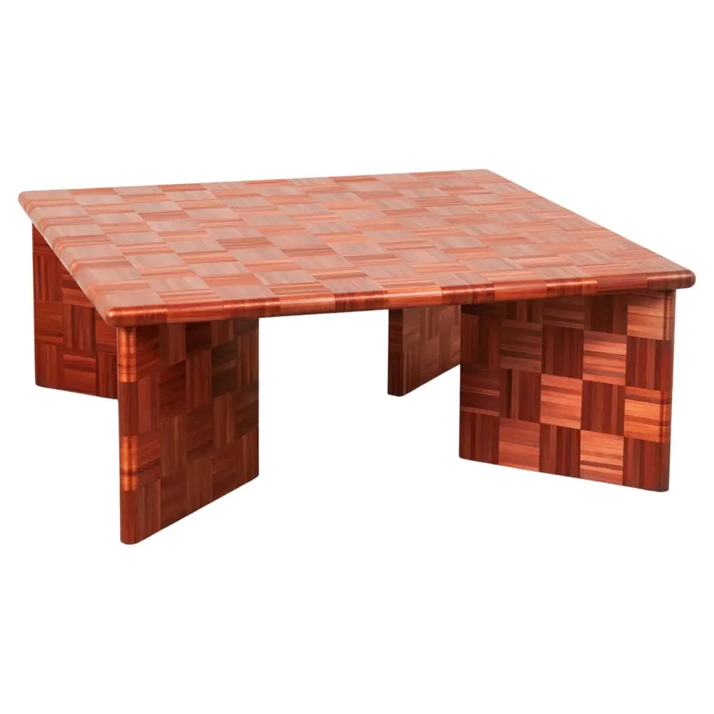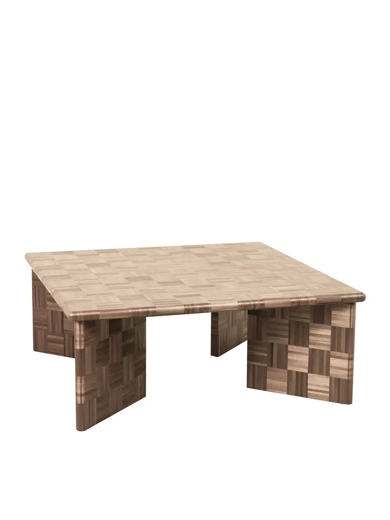 Bos Square Side Coffee Table Straw Marquetry Inlay Handcrafted Beige Weave